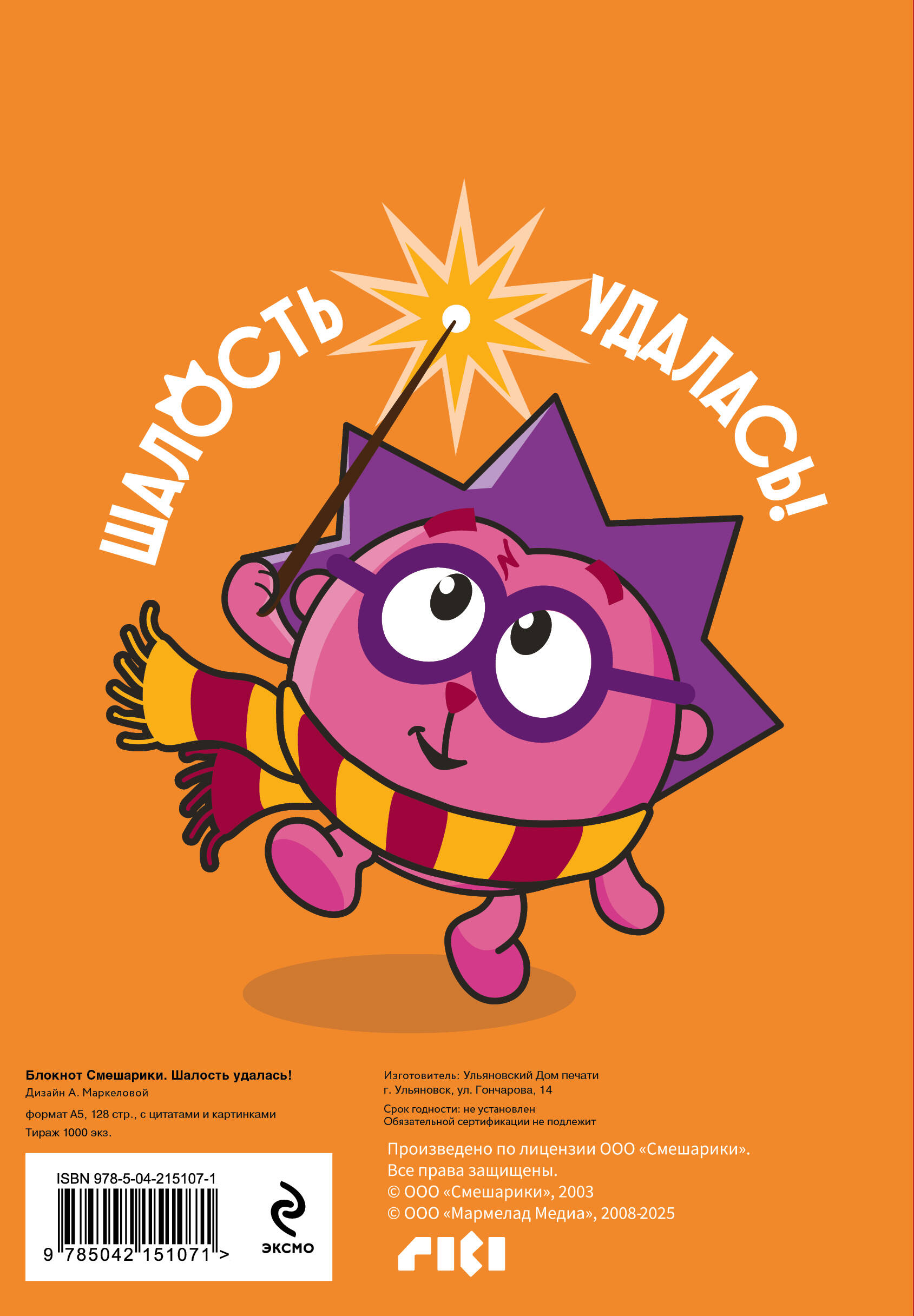 Аннотация: Смешарики. Блокнот шалость удалась! (формат А5, 128 стр., с цитатами и картинками)