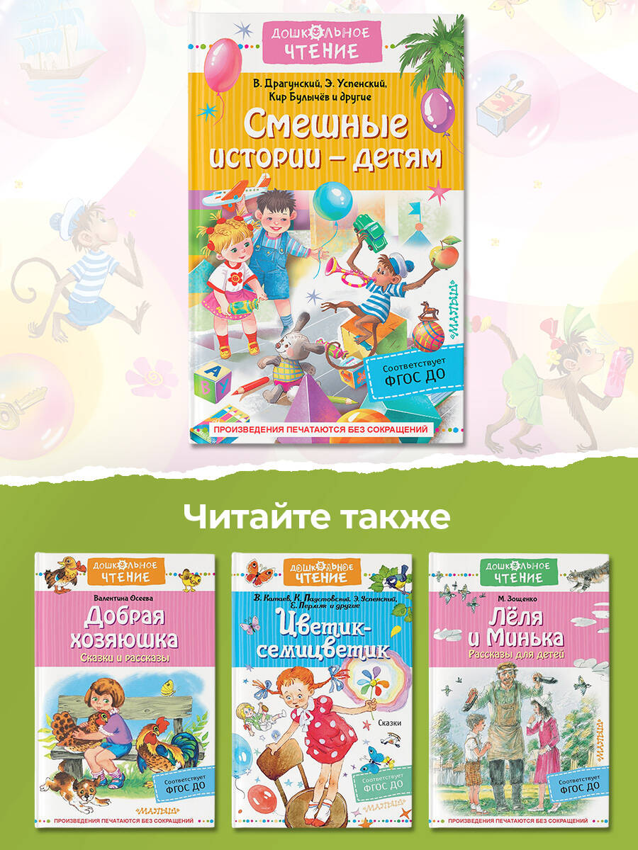 Важно иметь чувство юмора. А развивать его надо с детства. Даже маленький ребёнок умеет находить смешное, смеётся над шуткой и пробует сам шутить. Развить чувство юмора поможет книга "Смешные истории - детям". В неё вошли весёлые рассказы лучших детских писателей - М. Зощенко, В. Драгунского, В. Осеевой, Кира Булычёва и других. Смешные истории не только развеселят детей и их родителей, но и расскажут о том, чего надо бояться, кто нагрел море и что такое хлорофилл. Для дошкольного возраста.| Издательство | АСТ |