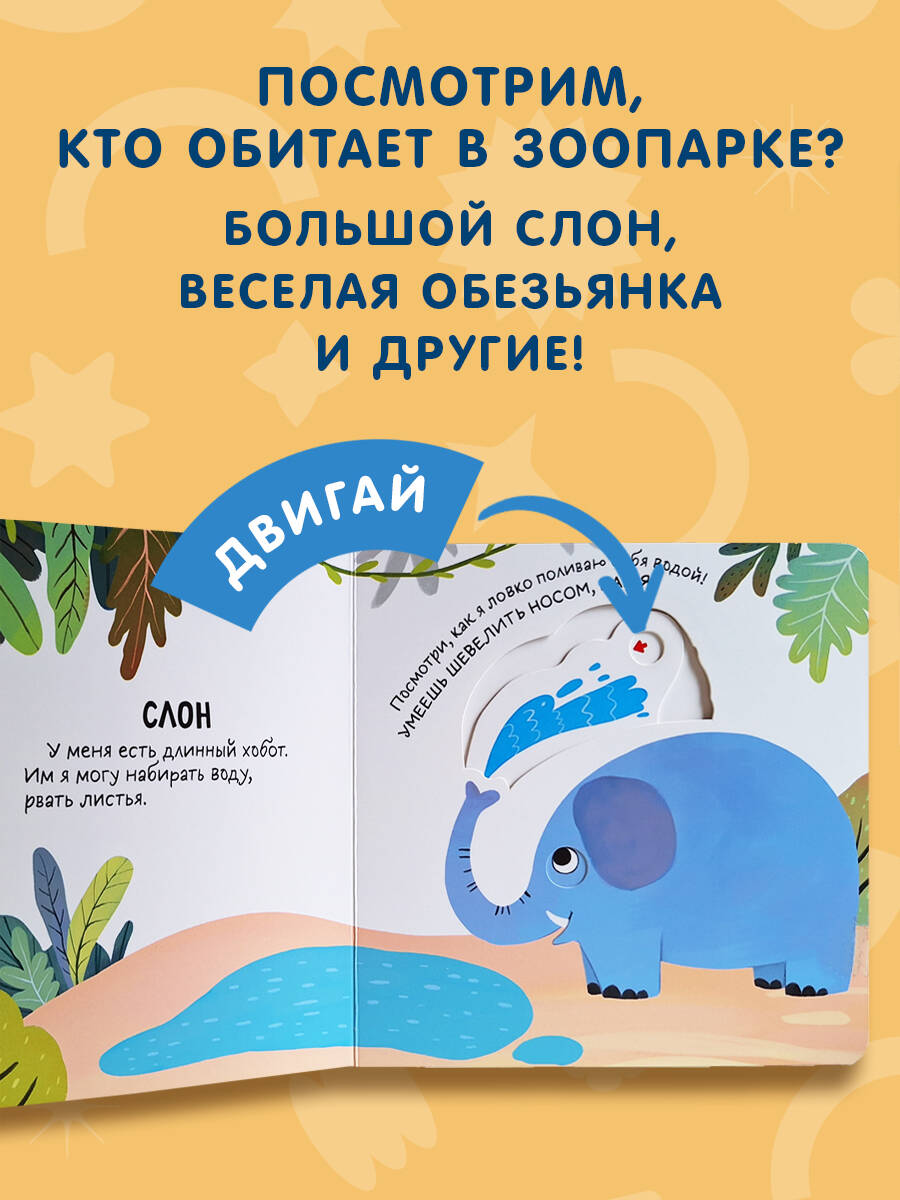 Развивающая книжка с задвижками для самых маленьких! В этой интерактивной книжке-игрушке малыш отправится в увлекательное путешествие по зоопарку. Яркие картинки, простые и забавные тексты познакомят ребенка с первыми интересными фактами о животных из разных стран. А подвижные элементы помогут развить мелкую моторику, внимание и воображение. Книга сделана из толстого прочного картона с безопасными скругленными углами - малыш сможет легко переворачивать странички самостоятельно. Игра с книгой начинается прямо с обложки, ведь там находится подвижная деталь! Книга подойдет детям от 1 года до 3 лет. Отличный подарок ребенку по любому поводу!| Издательство | ООО "Издательство "Эксмо" |