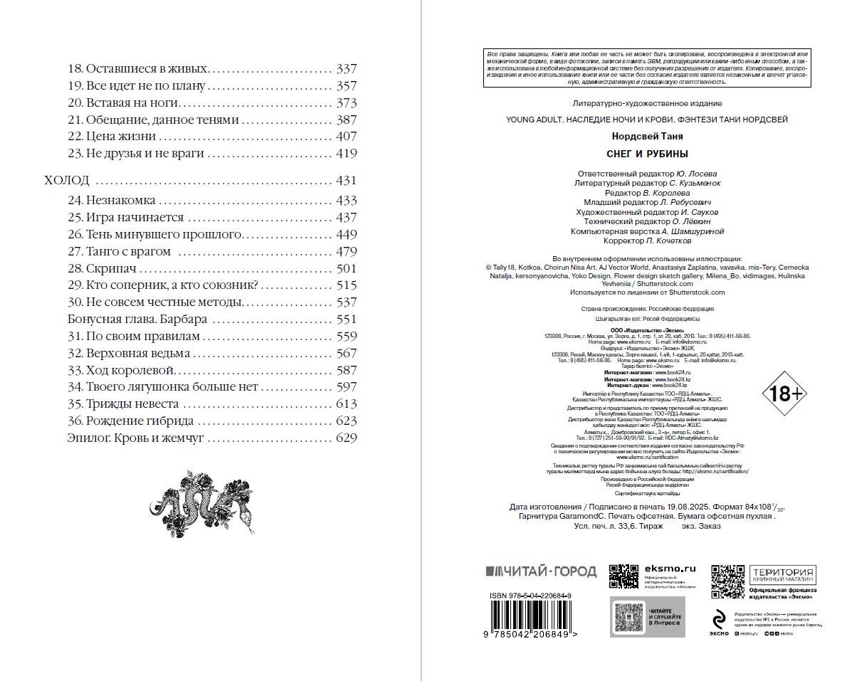 Продолжение невероятного цикла «Наследие ночи и крови» Тани Нордсвей. Романтическое фэнтези о вампирах и ведьмах, фиктивных отношениях, дворцовых интригах, истинной любви и темных пророчествах. Идеально для поклонников циклов «Из крови и пепла» Дж. Арментроут, «Игры королей» Софи Анри, сериалов «Дневники вампира» и «Древние». Раньше Лайла бежала от своей судьбы и истинного облика, но теперь должна принять себя и свою магию. Преданность и любовь Кирана помогают ей на непростом пути. Вместе им придется столкнуться с древними пророчествами, кровавыми ритуалами и угрозой возрождения первых вампиров. Писательница Таня Нордсвей вновь открывает двери в мир, где магия и чувства переплетаются воедино, а каждое решение имеет свои последствия. Темные Дары, безжалостные Одаренные и герцог, скрывающий свою мрачную тайну. Здесь вампиры, оборотни и ведьмы сосуществуют с людьми. Вас ждут: • вампиры; • притягательный герцог; • фиктивные отношения; • дворцовые интриги; • Средневековье; • оборотни; • ведьмы; • кровь; • темные замки и пророчества.| Издательство | ООО "Издательство "Эксмо" |