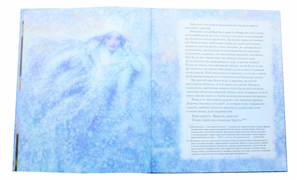 Мы взяли за основу лучший и наиболее точный, на наш взгляд, перевод «Снежной королевы» на русский язык, выполненный 120 лет назад супругами Анной и Петром Ганзен, переработали и отредактировали его, приведя в соответствие с нормами современного русского языка.