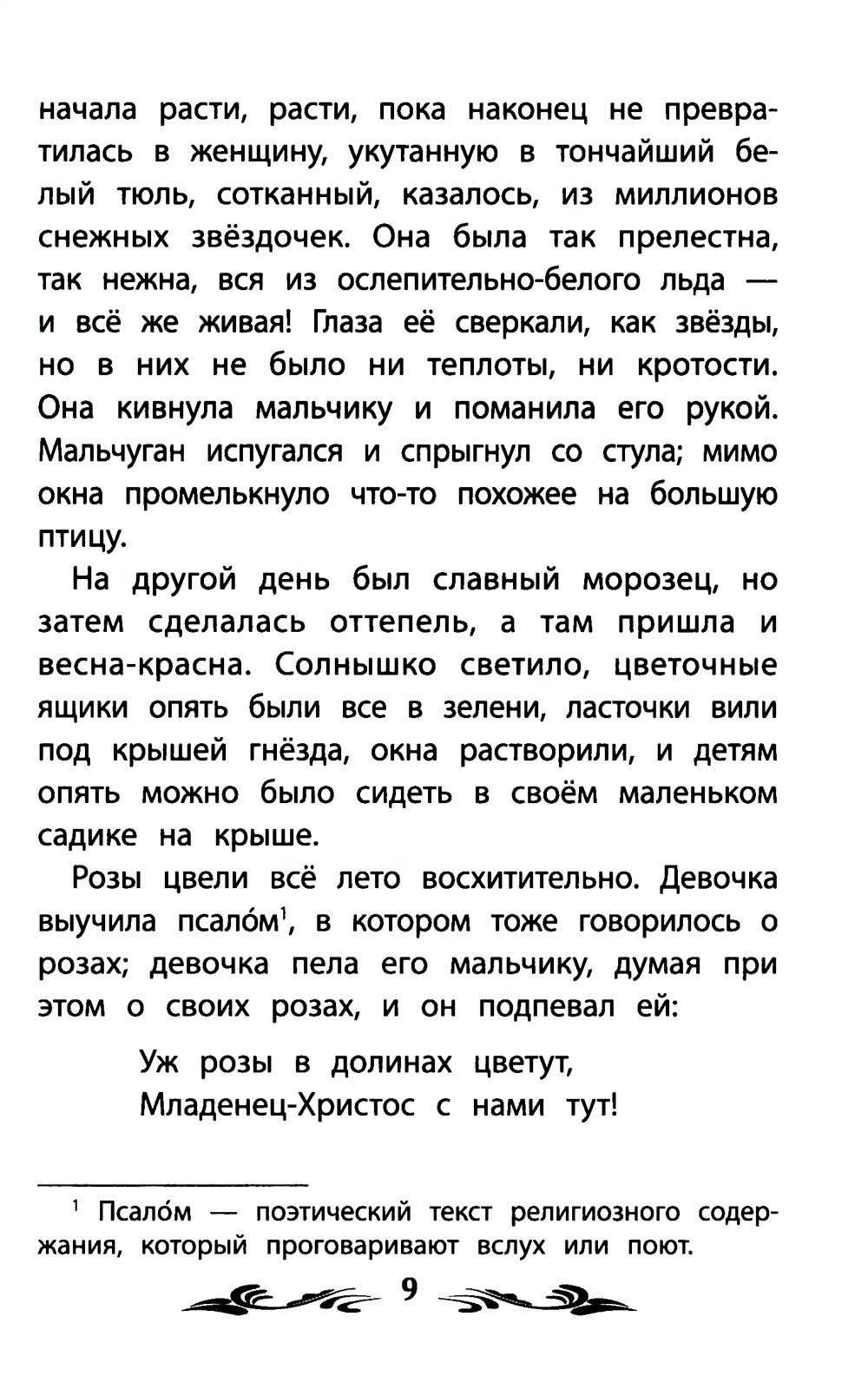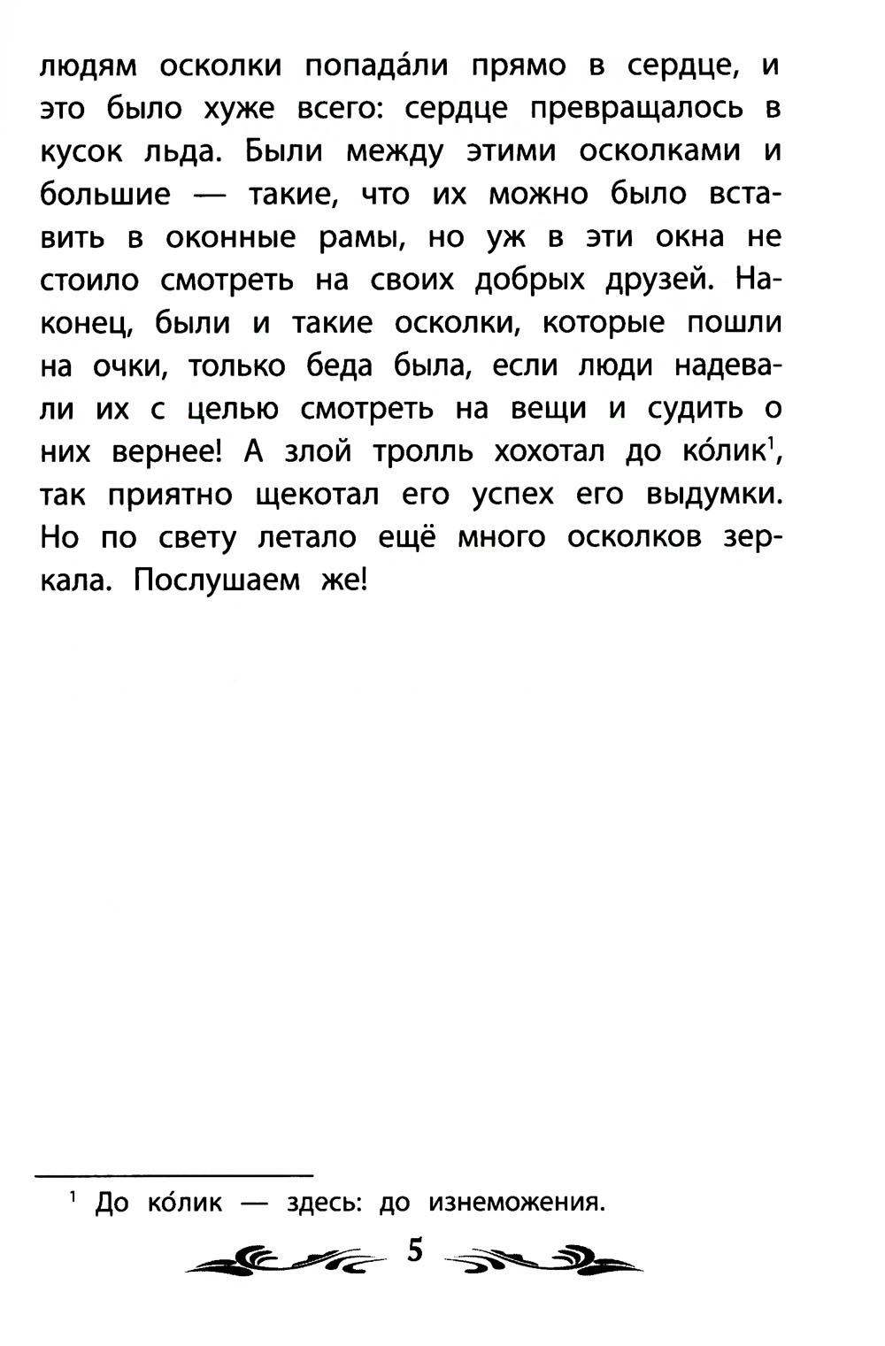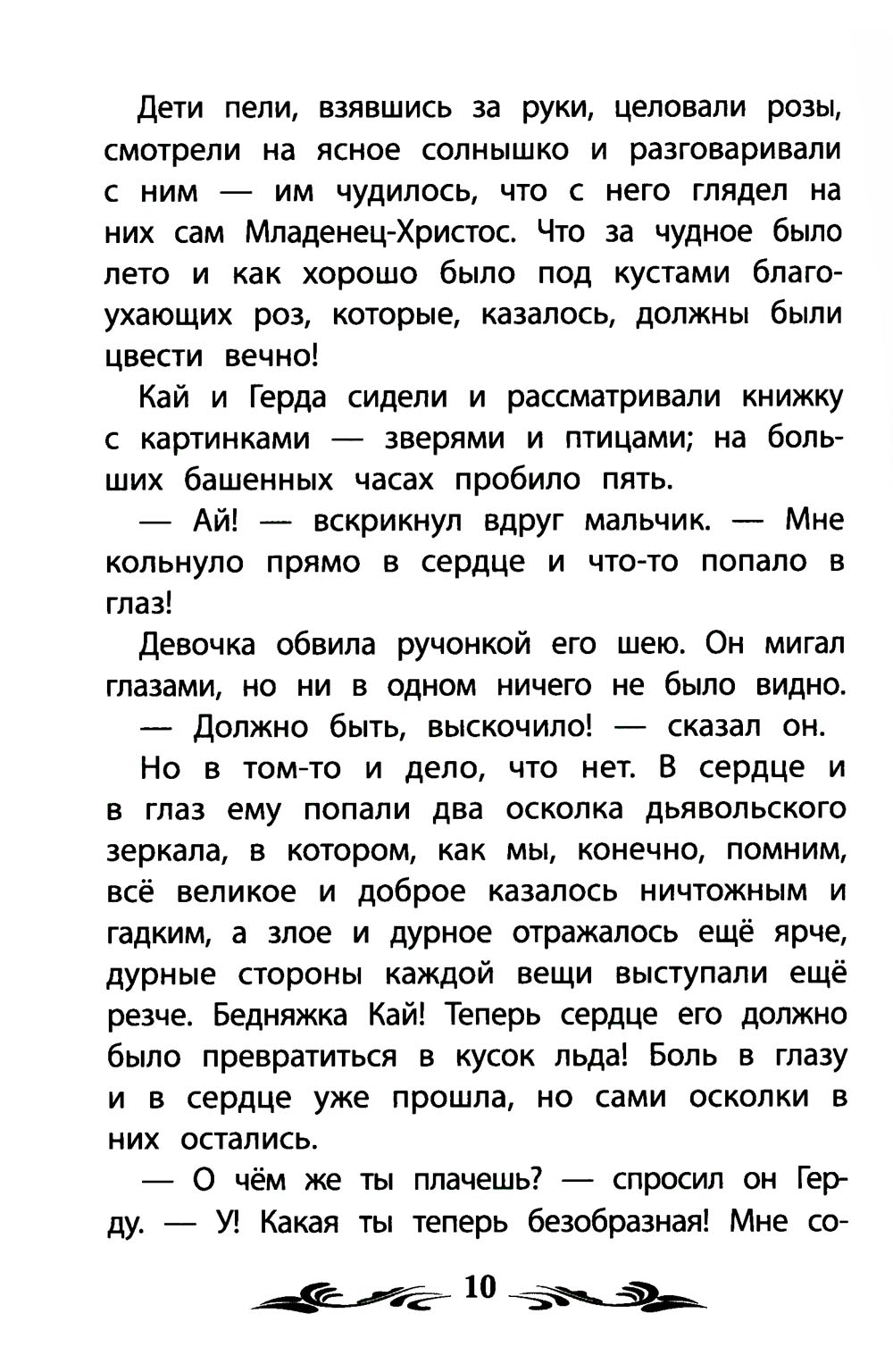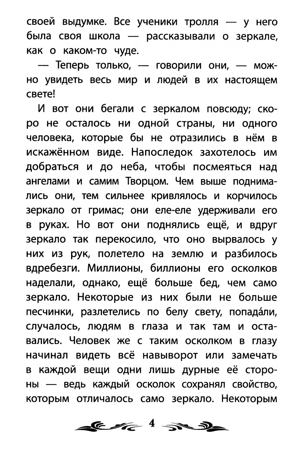 Ганс Христиан Андерсен (1805-1875) - один из самых знаменитых сказочников мира. Родился в бедной семье башмачника и прачки. Несмотря на трудную жизнь, мальчик с раннего детства был погружён в сказочный мир: отец часто читал ему вслух волшебные сказки, а склонность к фантазиям и мечтательность помогали ему справиться с жизненными невзгодами. В возрасте 14 лет Андерсен отправился в Копенгаген, чтобы, как он сказал матери, «стать знаменитым». Фантастический рассказ «Пешее путешествие от канала Холмен к восточной оконечности Амагера», опубликованный в 1829 году, был благосклонно встречен читающей публикой и принёс писателю известность. В 1833 году Андерсен получил королевский грант и отправился путешествовать. За полтора года он посетил Германию, Швейцарию, Францию и Италию. Путешествие очень вдохновило писателя, и в 1835 году он опубликовывает свой первый сборник сказок. Книга сразу же стала популярной и имела большой успех. Всего Андерсен написал более 160 сказок. «Снежная королева» - одна из самых известных сказок писателя, которую с удовольствием читают дети и взрослые во всём мире. По ней снято множество мультипликационных и художественных фильмов, поставлен одноимённый балет, написана опера «История Кая и Герды». «Снежная королева» - это история любви и потери, долгих поисков и борьбы. Отчаянные попытки девочки, которая одна-одинёшенька бредёт по свету босиком, чтобы найти и вернуть домой её названого братца, не оставляют равнодушными ни героев книги (ей помогают река и цветы, голуби и вороны, разбойница и принц с принцессой, олень и жительницы далёких северных земель, а под конец даже ангелы), ни читателей - совсем юных и взрослых. Эта история о преданности человеческого сердца и о милосердии мира каждому из нас обещает: какие бы ветры ни носились над землёй, какие бы разлуки и потери ни стояли на нашем пути - в конечном счёте всё будет хорошо и правильно, так уж устроен мир! Для младшего школьного возраста. Текст произведения приводится без сокращений.| Издательство | Феникс |