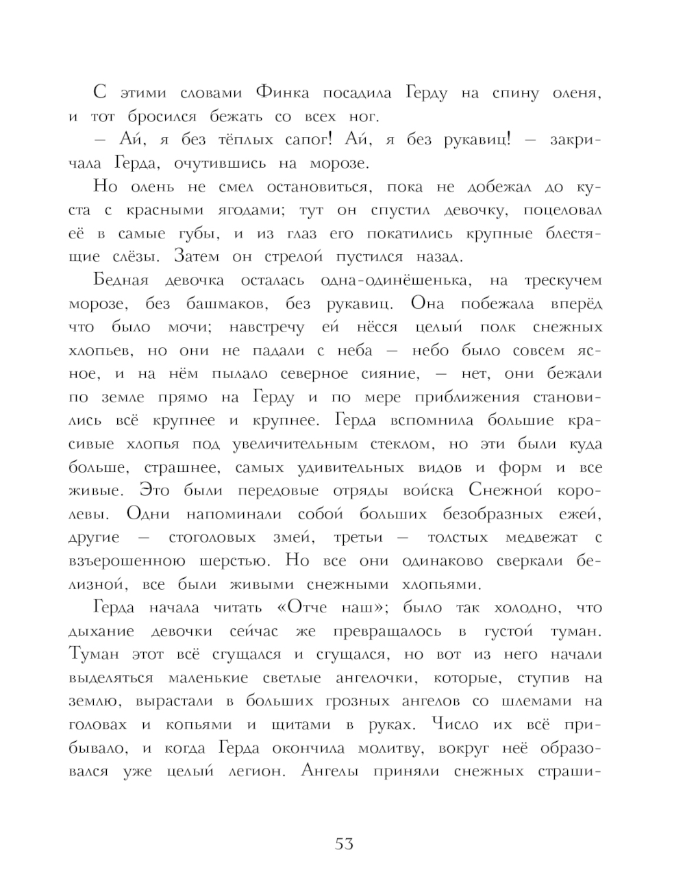«Снежная королева» - это классическая сказка, написанная датским писателем Хансом Кристианом Андерсеном и укращенная иллюстрациями Никифора Ращектаева. История рассказывает о двух детях, Кай и Герде, которые живут вместе в бедном квартале. Однажды, злая Снежная Королева похищает Кая и замораживает его сердце холодом. Герда отправляется в опасное путешествие, чтобы спасти своего друга и растопить ледяное сердце. Во время своего путешествия Герда встречает различных персонажей, каждый из которых помогает ей в поисках Кая. Она сталкивается с опасностями и преодолевает испытания, пока наконец не находит Кая во льдах Снежной Королевы. Герда проявляет смелость и любовь, которые растопляют сердце Кая и освобождают его от ледяного заклятья. «Снежная королева» - это история о силе дружбы, верности и любви. Она учит детей ценить друг друга, преодолевать трудности и бороться с злом. Сказка Андерсена оставляет читателя с чувством надежды и вдохновения. Классика детской литературы для младшего школьного возраста.