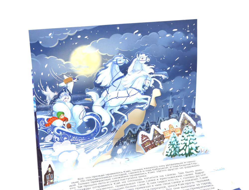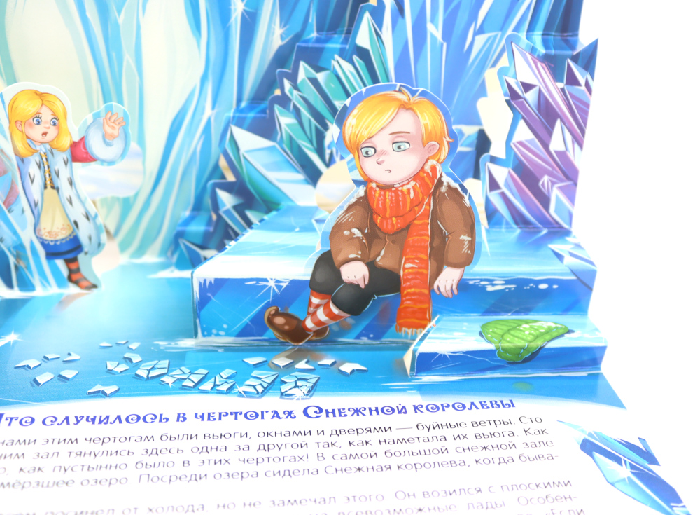 «Снежная королева» - удивительная сказка датского писателя Г. Х. Андерсена в формате книги-панорамки с объемными иллюстрациями. 3D развороты создают ощущение дополненной реальности и настоящего путешествия в сказку, в которой рассказывается об истинной дружбе, верности, настоящей любви и о победе добра над злом. Книга сделана из качественного и плотного картона. Яркая и контрастная печать делает картинки максимально насыщенными. Порадуйте своего ребёнка уже знакомой и полюбившейся многим сказкой про Герду и Кая с объёмными иллюстрациями, которые удивят вашего малыша!