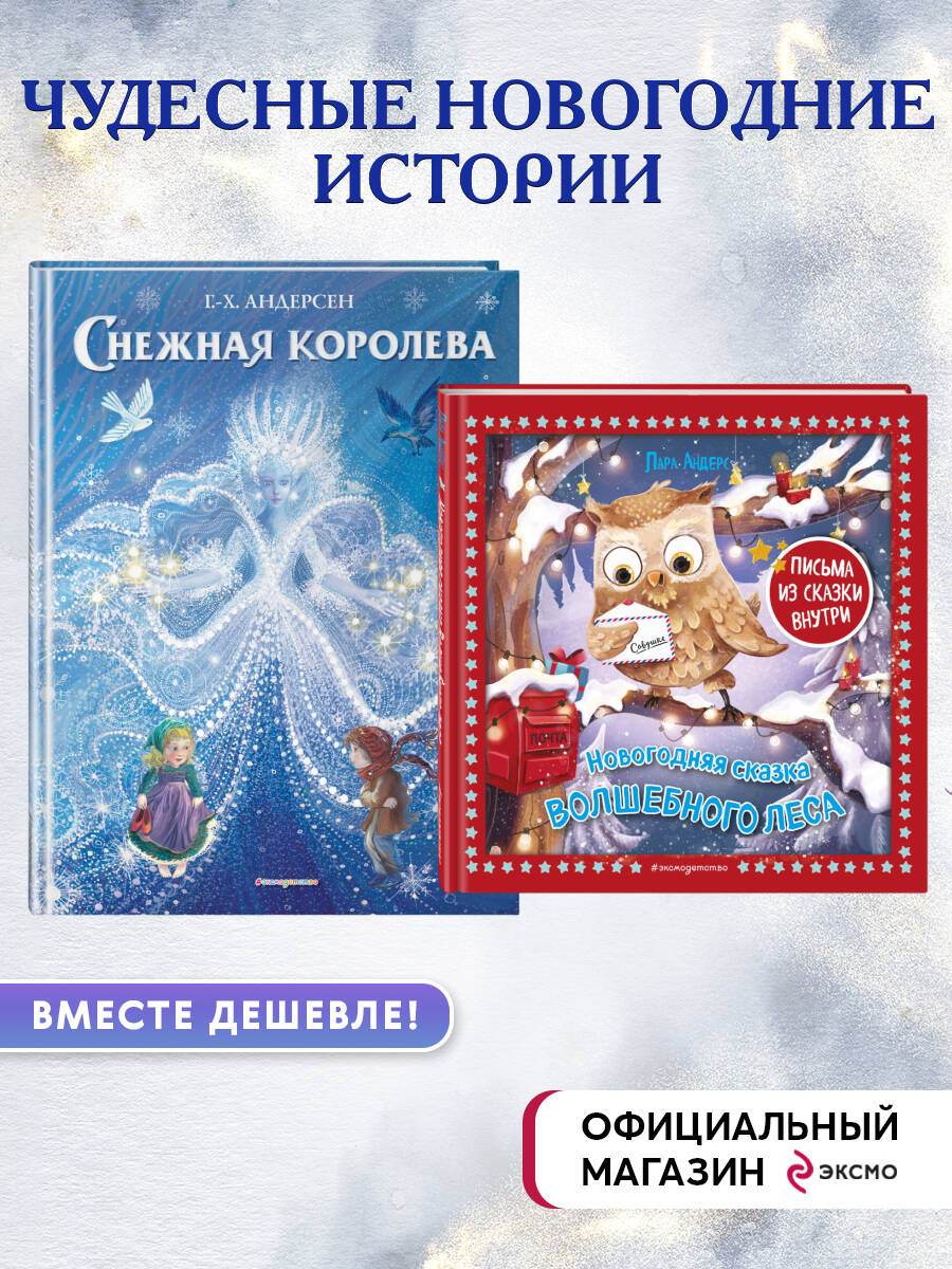 Комплект включает 2 книги, которые помогут ощутить атмосферу наступающего торжества - «Новогодняя сказка Волшебного леса» Лары Андерс и «Снежная королева» Ганса Христиана Андерсена. Великолепные подарочные издания с иллюстрациями известных европейских художников станут отличным подарком и порадуют любого ребёнка. «Новогодняя сказка Волшебного леса» - книга с настоящими конвертами на страничках и вложенными в них декоративными письмами, которые ребёнок сможет вытащить и прочитать. Обложка с глянцевым лаком и объёмными элементами, которые приятно не только рассматривать, но и трогать. В Волшебном лесу поднялась небывалая вьюга. Ветер повалил деревья и разрушил школу, в которой лесные зверята собирались отметить Новый год. Сова Софийка хочет встретить праздник вместе с лучшими друзьями. Чтобы собрать их вместе, её братик Филька написал письма лесным зверятам и пообещал приготовить для них подарки, достать которые поможет только волшебство. «Снежная королева» - одна из самых известных сказок Ганса Христиана Андерсена, ставшая настоящим символом зимних праздников. Декоративные элементы на обложке покрыты объёмным лаком с блёстками, которые напоминают снежинки или кусочки льда. Яркий макет, полный текст и перевод А. и П. Ганзен. Сказка о верной дружбе и силе любви, которые преодолевают любые препятствия.| Издательство | ООО "Издательство "Эксмо" |