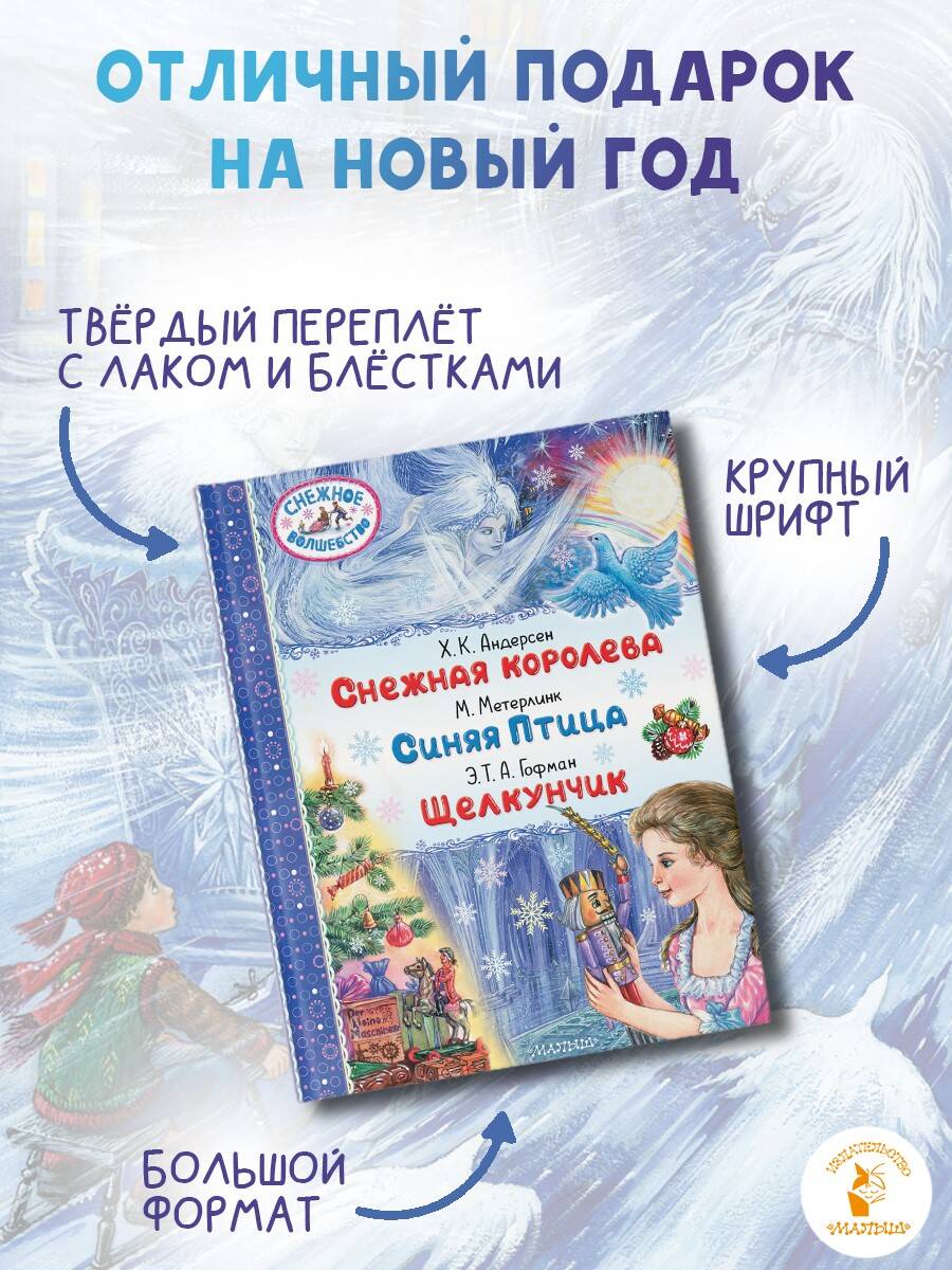 Новый год и Рождество - самое волшебное время! На улице - мороз и ярко сверкает снег в лучах зимнего солнца. Дети катаются на санках с горок и строят снежные крепости. И как же приятно после зимних забав прийти домой, выпить горячего чаю и вместе с родителями окунуться в настоящее зимнее волшебство! Как же это сделать? Да очень легко - просто открой эту книгу, в которой собрано три знаменитые зимние сказки: «Снежная королева» Х.К. Андерсена, «Синяя птица» Мориса Метерлинка и «Щелкунчик и мышиный король» Э.Т. А. Гофмана. Добро пожаловать в зимнее волшебство!
