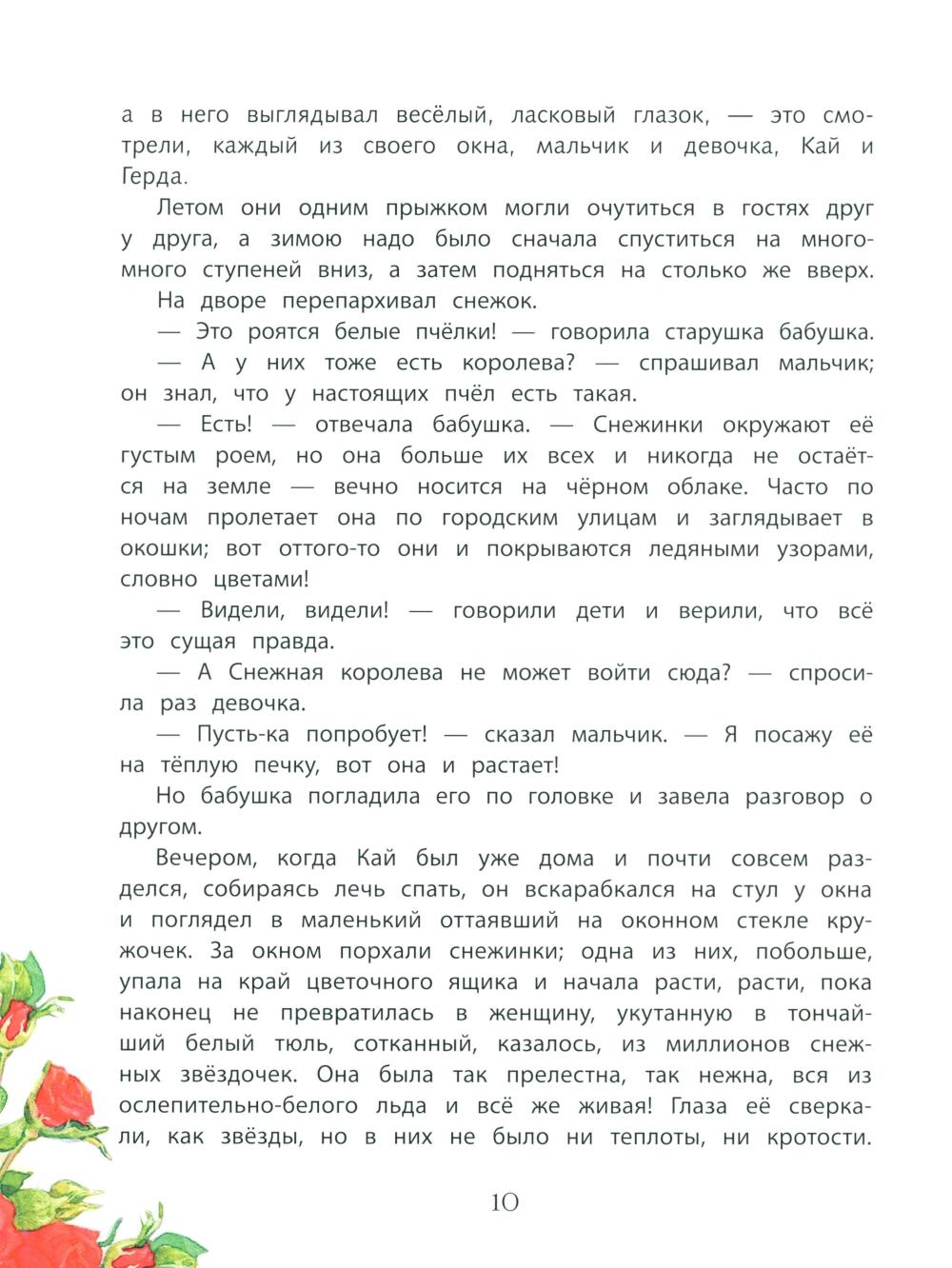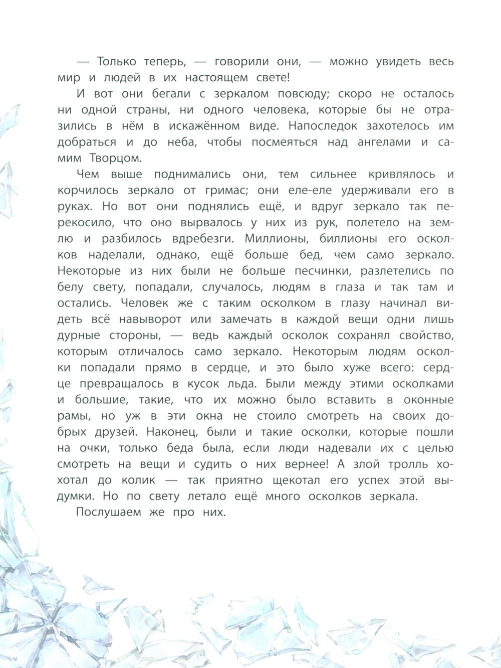 Ханс Кристиан Андерсен считал «Снежную королеву» сказкой всей своей жизни. Она тесно связана с биографией самого писателя, а прототипами главных героев стали реальные люди из его окружения. Сказка впервые увидела в свет в 1844 году и сразу завоевала любовь читателей. Трогательная и светлая история о самоотверженной любви, побеждающей зло, о вере и преданности, которые делают даже самого слабого человека стойким, решительным и смелым перед лицом невзгод и тяжёлых испытаний, прекрасный повод поговорить с ребёнком о вечных ценностях, о борьбе добра и зла. В этой книге мы увидим волшебный мир Ханса Кристиана Андерсена глазами прекрасного художника Екатерины Бородачевой. Нежные и светлые пейзажи, изысканные, утонченные костюмы, богатая палитра с первого взгляда окутают вас и навсегда останутся в вашем сердце. Текст печатается без сокращений и переработки. Для детей младшего школьного возраста.| Издательство | Стрекоза |