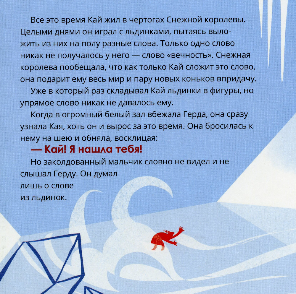 Новая серия издательства VoiceBook - любимые сказки, проиллюстрированные в манере письма известных художников. Переложение всем известной зимней сказки о Снежной королеве в новом издании - это история о любви и надежде, рассказанная при помощи ярких и живых мазков и фигур в стиле позднего Пикассо. Угловатые и страстные картины Пикассо в манере кубизма стали источником вдохновения для иллюстратора, создавшего свои рисунки к сказке «Снежная королева», чтобы передать художественным языком и геометрическими форматами рассказ о девочке Герде и мальчике Кае. Новую серию книг издательства можно читать или рассматривать, можно сравнивать иллюстрации с изображениями оригинальных работ мастеров, искать повторяющиеся детали, улавливать различия, обсуждать цветовую палитру и особенности эпохи. Для этого достаточно увлечься сказкой и способом отобразить ее в живописи.