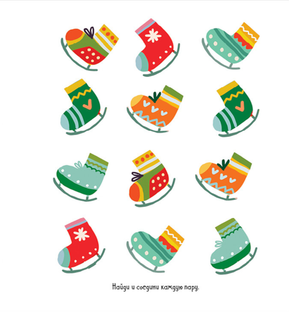 30 заданий для увлекательного досуга малыша в яркой новогодней книжке. Играйте, рисуйте, фантазируйте, разгадывайте загадки, ищите отличия, тренируйте логику и проводите зимние каникулы весело и с пользой!