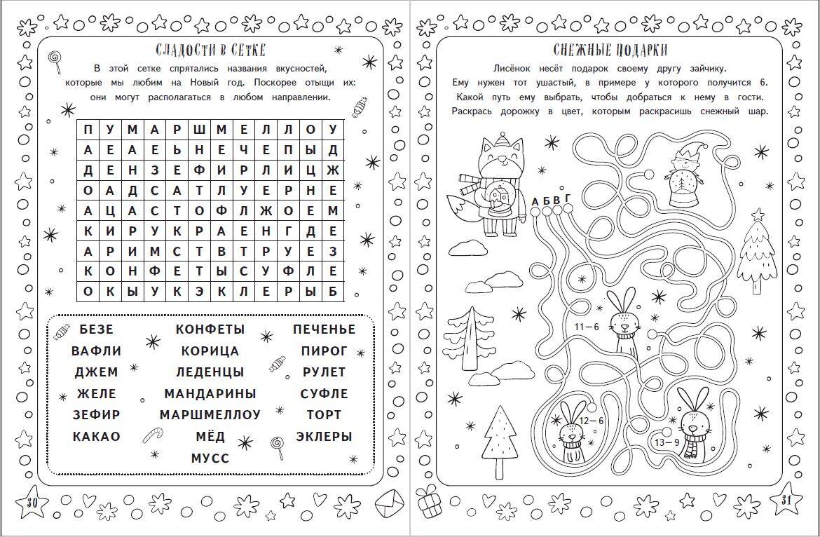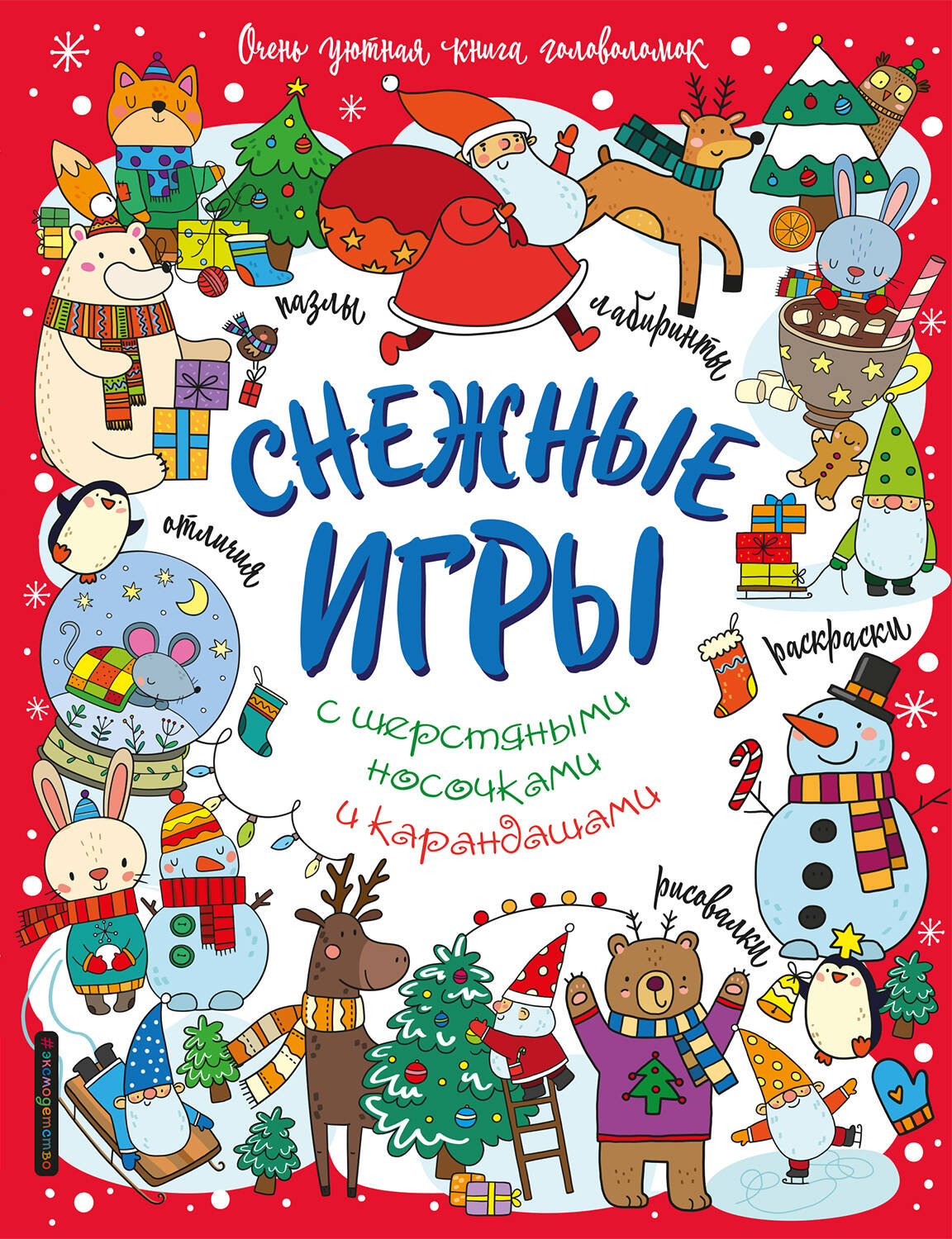 Снежные игры с шерстяными носочками и карандашами. Очень уютная книга головоломок