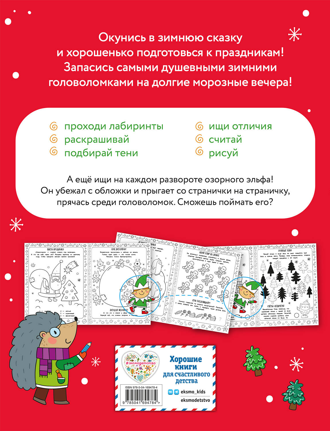 Зима уже за окном: морозы, снег и рано темнеет? Бр-р-р! Проведите время дома, уютно устроившись с нашей книгой самых мягких и душевных головоломок. От них вам сразу станет теплее, а вечера пролетят незаметно и увлекательно. Специально для долгих осенне-зимних вечеров с пледиком мы собрали уникальную коллекцию из более чем 80 головоломок самых разных типов. В книжке вы найдете лабиринты, поиск отличий, несложные задания на счет, внимательность, познавательные упражнения, игры со словами и многое-многое другое. Устраивайтесь поудобнее, запасайтесь чаем, печеньками, карандашами и фломастерами. Впереди долгие и очень душевные часы с самыми теплыми и нежными головоломками. От них сразу потеплеет на душе, и грядущий праздник прокрадется в ваш дом.| Издательство | ООО "Издательство "Эксмо" |