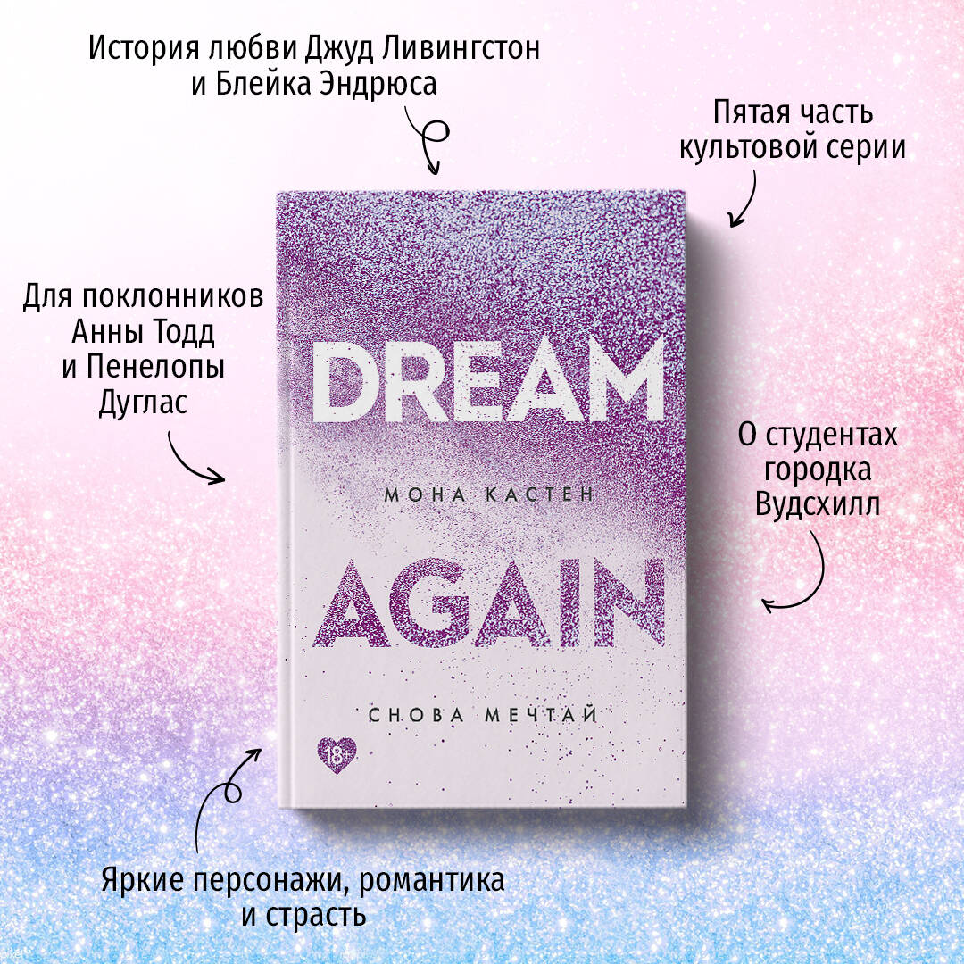 «Снова мечтай» - заключительная книга в серии «Абсолютный бестселлер Моны Кастен». Джуд Ливингстон навсегда рассталась со своей мечтой - стать успешной актрисой в Голливуде. Она потеряла работу и ей пришлось переехать к своему брату в Вудсхилл. Только есть одна загвоздка. Ее новый сосед по дому - Блейк Эндрюс, парень, чье сердце она разбила полтора года назад. За это время он сильно изменился и больше не похож на того весельчака, которого она когда-то любила. Но Джуд чувствует, что ее тянет к нему все больше и больше. Сможет ли Блейк простить ее и дать второй шанс? Мона Кастен - автор международного бестселлера «Спаси меня». Тираж ее книг уже перевалил отметку в 300 000 экземпляров в России и 2 млн экземпляров в Германии! Именно эта серия открыла писательнице путь на верхние строчки рейтингов немецких магазинов. Этот роман идеально подойдет всем, кто полюбил оригинальную трилогию Моны Кастен, а также является поклонником творчества Анны Тодд и Пенелопы Дуглас.| Издательство | ООО "Издательство "Эксмо" |