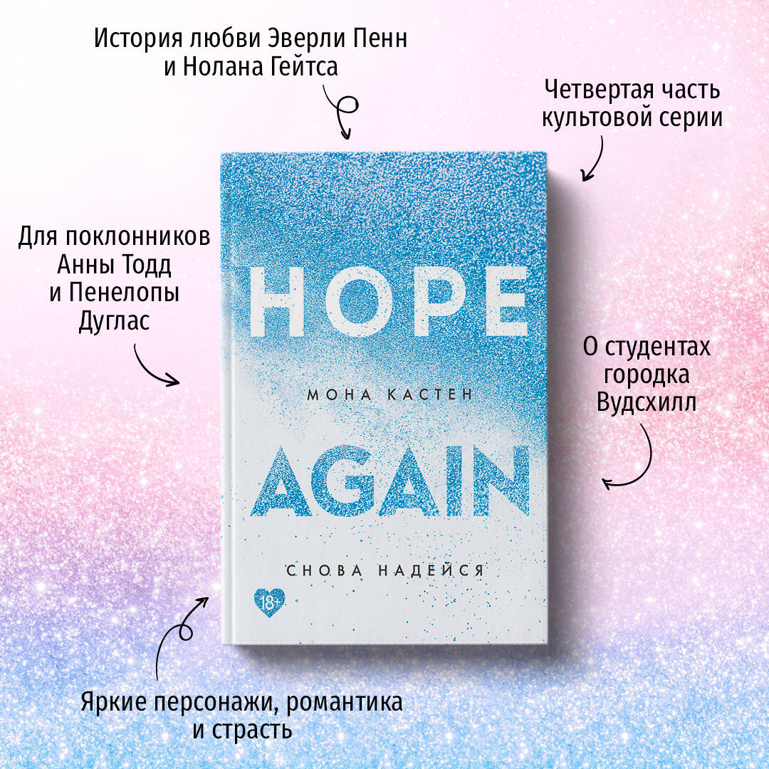 «Снова надейся» - четвертая книга серии «Абсолютный бестселлер Моны Кастен». Эверли Пенн не собиралась влюбляться, тем более в своего преподавателя. Но Нолан Гейтс умен, очарователен, улыбчив и невероятно красив. Только переписка с ним помогает ей оставить тяжелые воспоминания детства. С каждым днем они все больше узнают друг о друге, и Эверли уже не в силах игнорировать свои чувства. Она готова переступить черту, но мрачная тайна, которую хранит Нолан, может разрушить их отношения навсегда. Мона Кастен - автор международного бестселлера «Спаси меня». Тираж ее книг уже перевалил отметку в 280 000 экземпляров в России и 2 млн экземпляров в Германии! Именно эта серия открыла писательнице путь на верхние строчки рейтингов немецких магазинов. Идеально подойдет всем, кто полюбил оригинальную трилогию Моны Кастен, а также является поклонником творчества Анны Тодд и Пенелопы Дуглас.| Издательство | Эксмо |