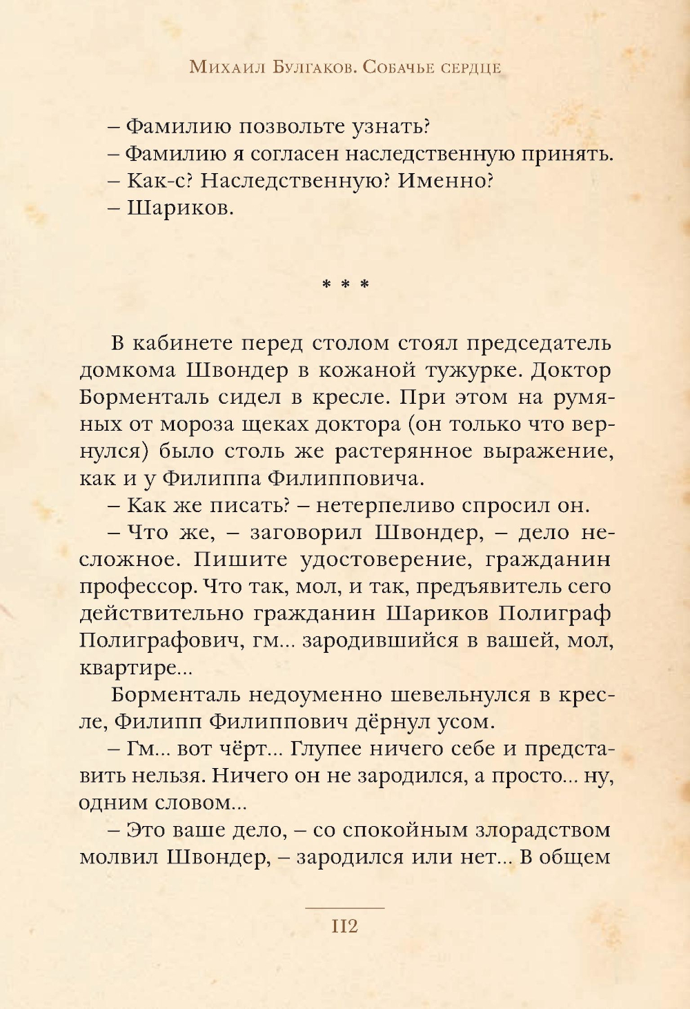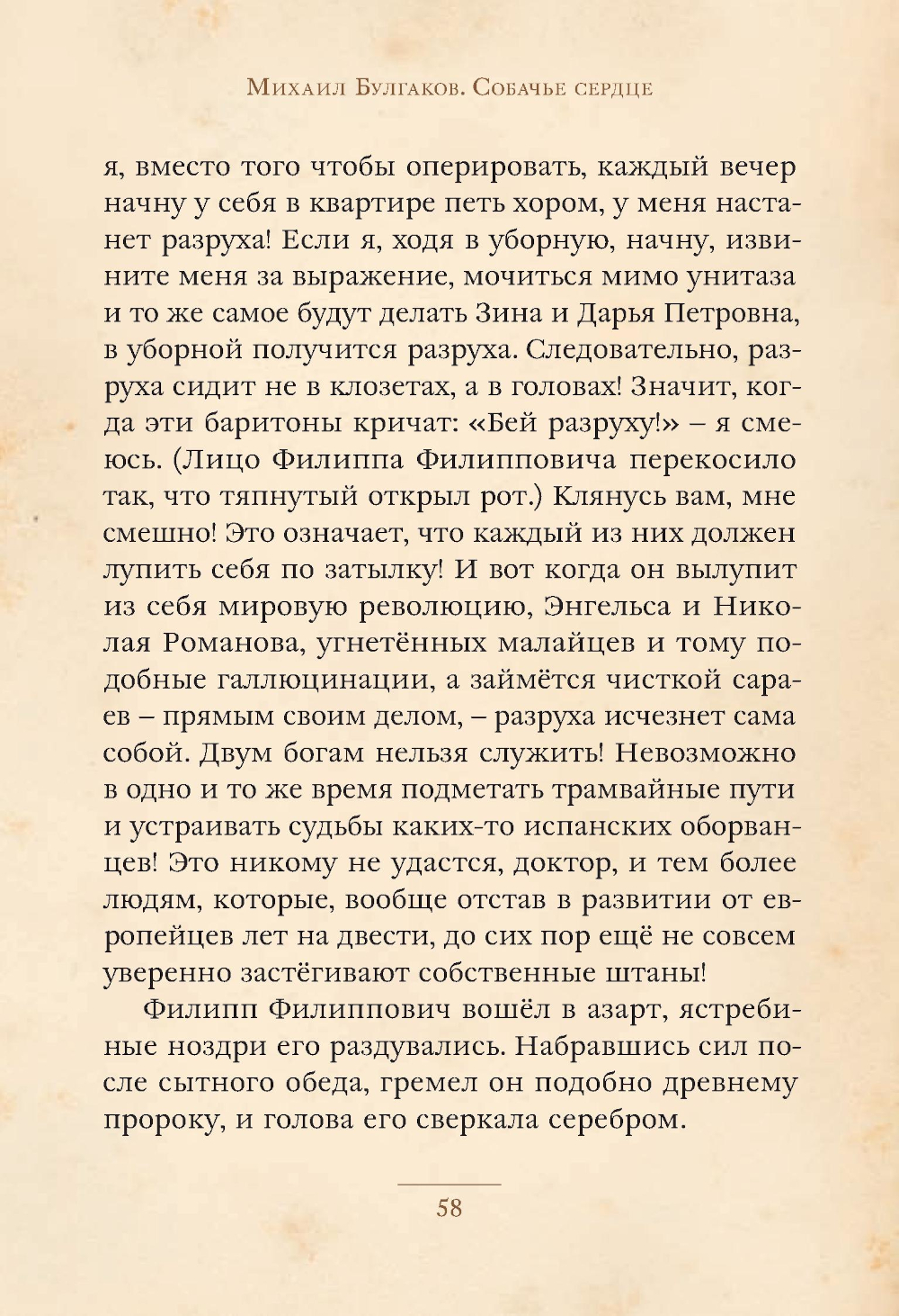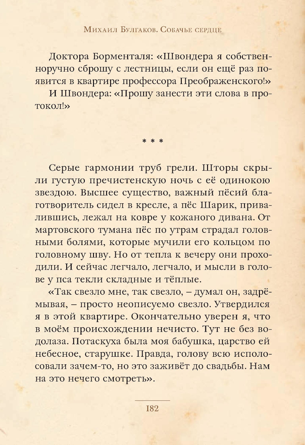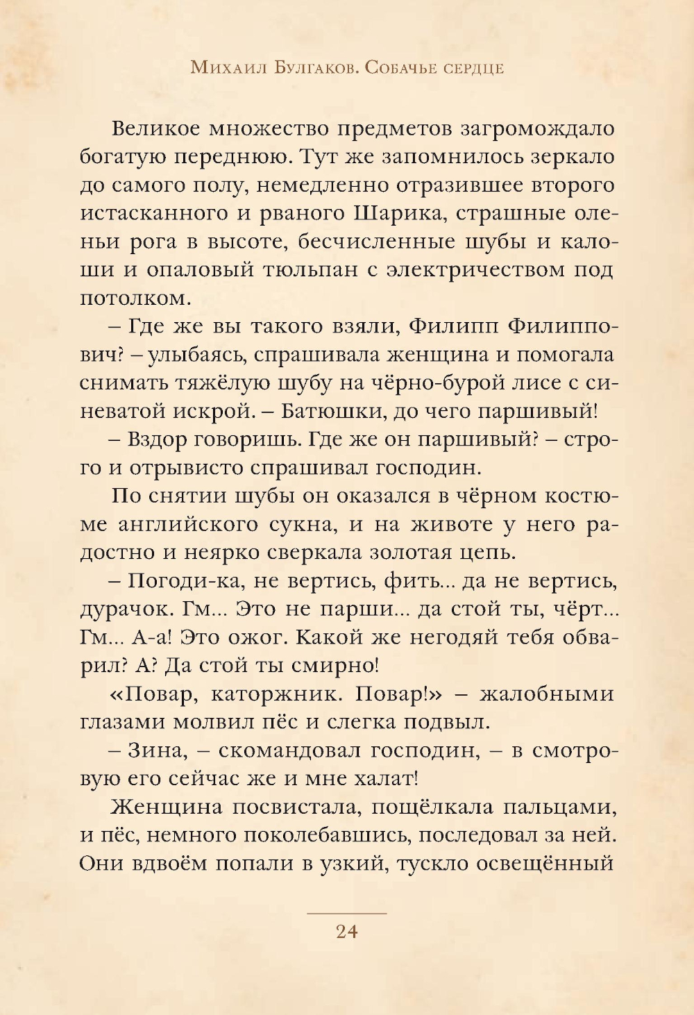 Михаил Афанасьевич Булгаков жил в непростое время перемен. Но ни режим, ни цензура не смогли остановить его от создания прекрасных остроумных произведений, критикующих пороки и заблуждения советского общества начала XX века. Профессор Преображенский - гениальный врач и ученый, работающий в стране кардинально изменившейся у него на глазах. Путем сложного эксперимента он превращает хорошего старого дворового пса в дурного нового человека, которого переродившееся российское общество принимает с распростертыми объятиями. Но профессору невыносимо жить под одной крышей с этим новым человеком, поэтому он принимает крайне противоречивое решение… Повесть «Собачье сердце» стала сплетением научной фантастики и острой сатиры на общество, для которого разрушение старого намного более значимо, чем созидание нового. И если даже самая последняя собака готова присоединиться к их разрухе, они выпишут ей паспорт и выдадут все необходимые разрешения.| Издательство | ИД Мещерякова |