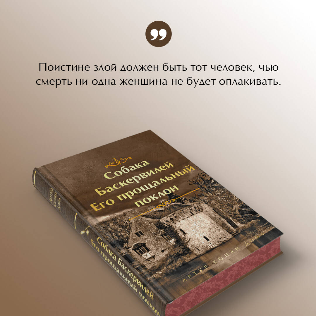История, леденящая кровь, о таинственной собаке, преследующей род Баскервилей, стала одной из визитных карточек знаменитого сыщика Шерлока Холмса и одним из самых популярных произведений Артура Конан Дойля. Владелец Баскервиль-холла сэр Чарльз Баскервиль умирает при загадочных обстоятельствах. Доктор Мортимер, сосед и друг сэра Чарльза, обращается за советом к Шерлоку Холмсу, чтобы уберечь от гибели его племянника, последнего из древнего рода Баскервилей. Это издание является четвертой книгой о Шерлоке Холмсе в коллекционных изданиях «Ярких страниц», всего четыре тома. В него вошли повесть «Собака Баскервилей» и цикл рассказов «Его прощальный поклон» с комментариями переводчика Кирилла Савельева. Дизайн этого коллекционного издания серии «Яркие страницы» вдохновлен дагерротипами XIX века, форзацы и обрез запечатаны красивым узором.
