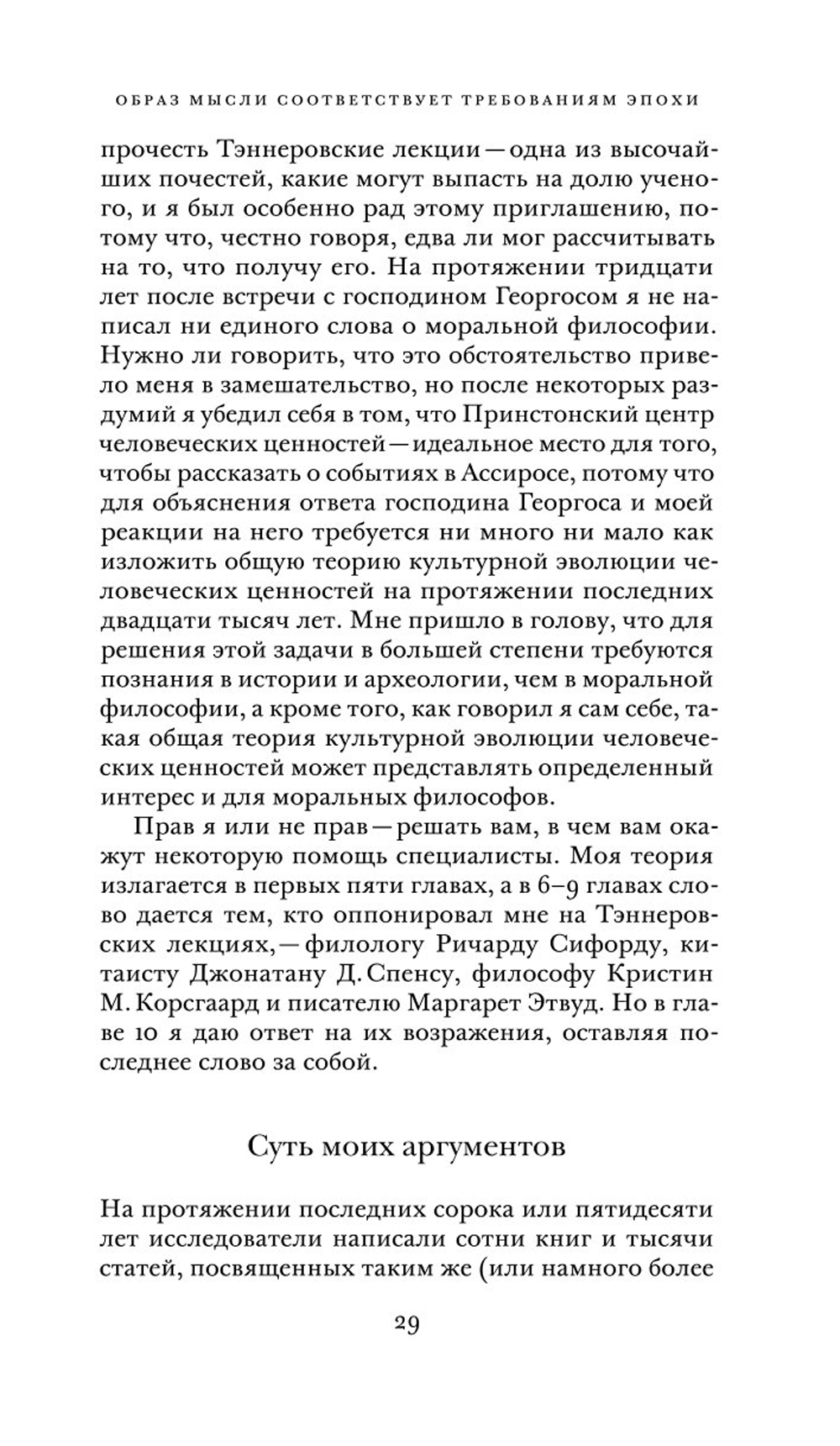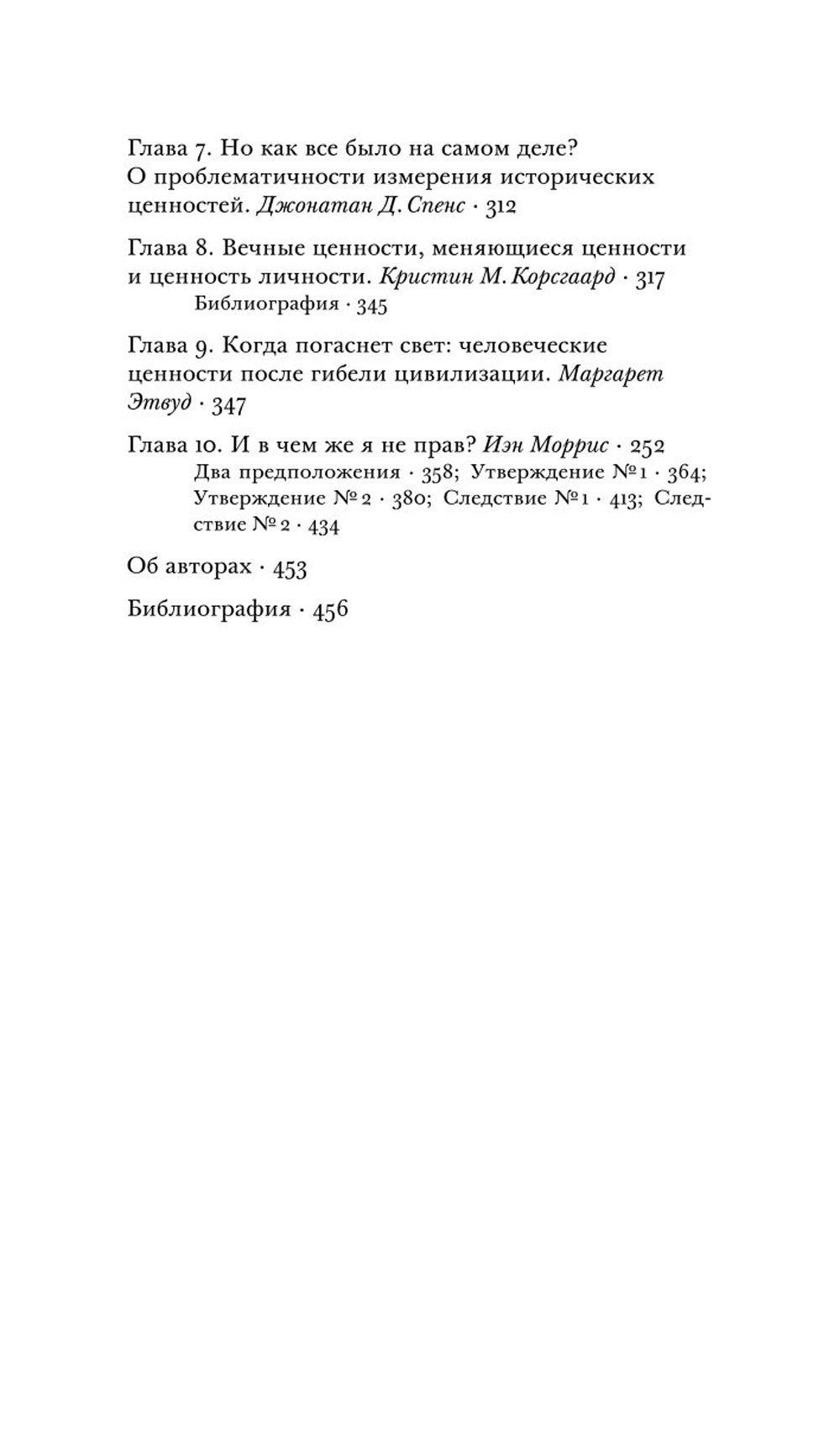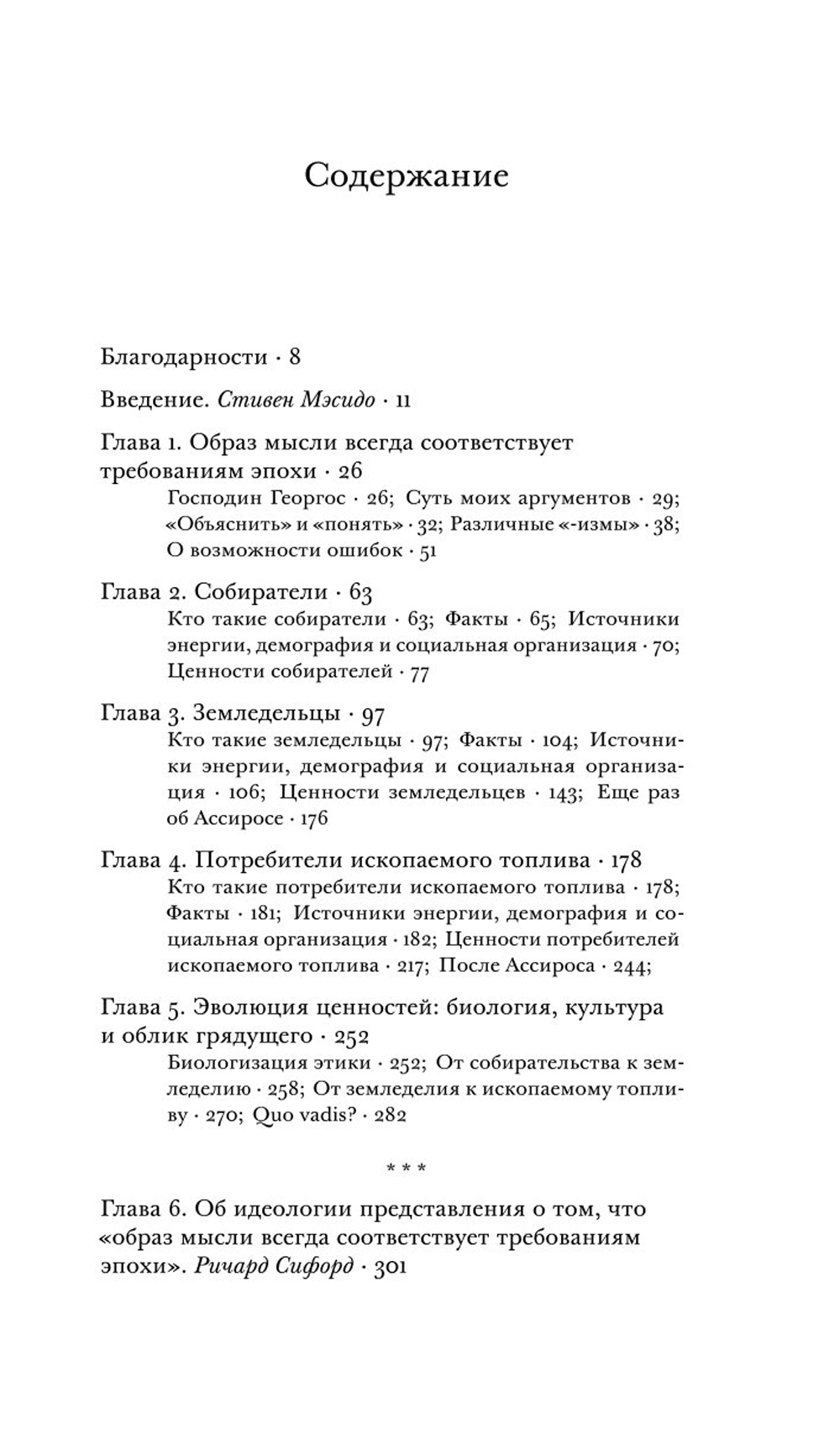 Опираясь на данные археологии, антропологии, биологии и истории, Иэн Моррис, автор бестселлера «Почему Запад правит до сих пор», предлагает убедительное объяснение эволюции человеческих ценностей, утверждая, что за принципиальными долгосрочными изменениями ценностей стоит наиболее фундаментальная из всех сил - энергия. Люди придумали три главных способа получать необходимую им энергию: собирательство, земледелие и использование ископаемого топлива. В крохотных отрядах собирателей лучше всего живется тем, кто ценит равенство, но готов решать конфликты путем насилия; в крупных земледельческих обществах в наиболее выгодном положении оказываются те, кто ценит иерархию и в меньшей степени склонен прибегать к насилию; наконец, в гигантских обществах потребителей ископаемого топлива маятник снова качнулся в сторону равенства, но еще больше удалился от насилия.