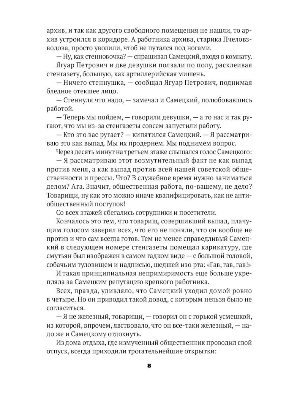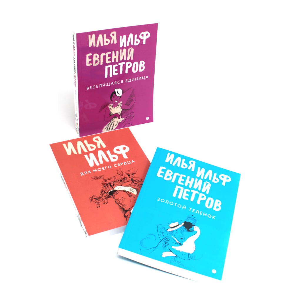 Комплект из 3 книг: «Веселящаяся единица» В этот сборник включены рассказы, фельетоны, статьи и речи, написанные в 1932-1937 годах, а также водевили «Сильное чувство» и «Сценарий звукового кинофильма» знаменитого дуэта. Малая проза Ильфа и Петрова искрометна и злободневна, в ней речь идет о насущном, о реальных людях, о фактах. Эти небольшие зарисовки невероятно точно воспроизводят дух эпохи 1930-х годов. «Для моего сердца: записные книжки, рассказы, очерки» Эту книгу следовало бы назвать «Ильф без Петрова». В нее вошли последние произведения Ильи Ильфа, написанные с 1923 по 1937 год, в том числе его записные книжки, рассказы, очерки и фельетоны. В качестве предисловий в сборник также включены воспоминания Евгения Петрова об Илье Ильфе. «Золотой теленок» Роман «Золотой теленок» (1931) - вторая книга знаменитой дилогии Ильи Ильфа и Евгения Петрова. Обаятельный и остроумный авантюрист пускается в погоню за баснословными деньжищами. Он расставляет хитроумные сети подпольному миллионеру Корейко вместе со своими компаньонами Паниковским и Шурой Балагановым, вновь оказываясь в вихре приключений, происходящих на фоне картин советской жизни начала 1930-х годов.
