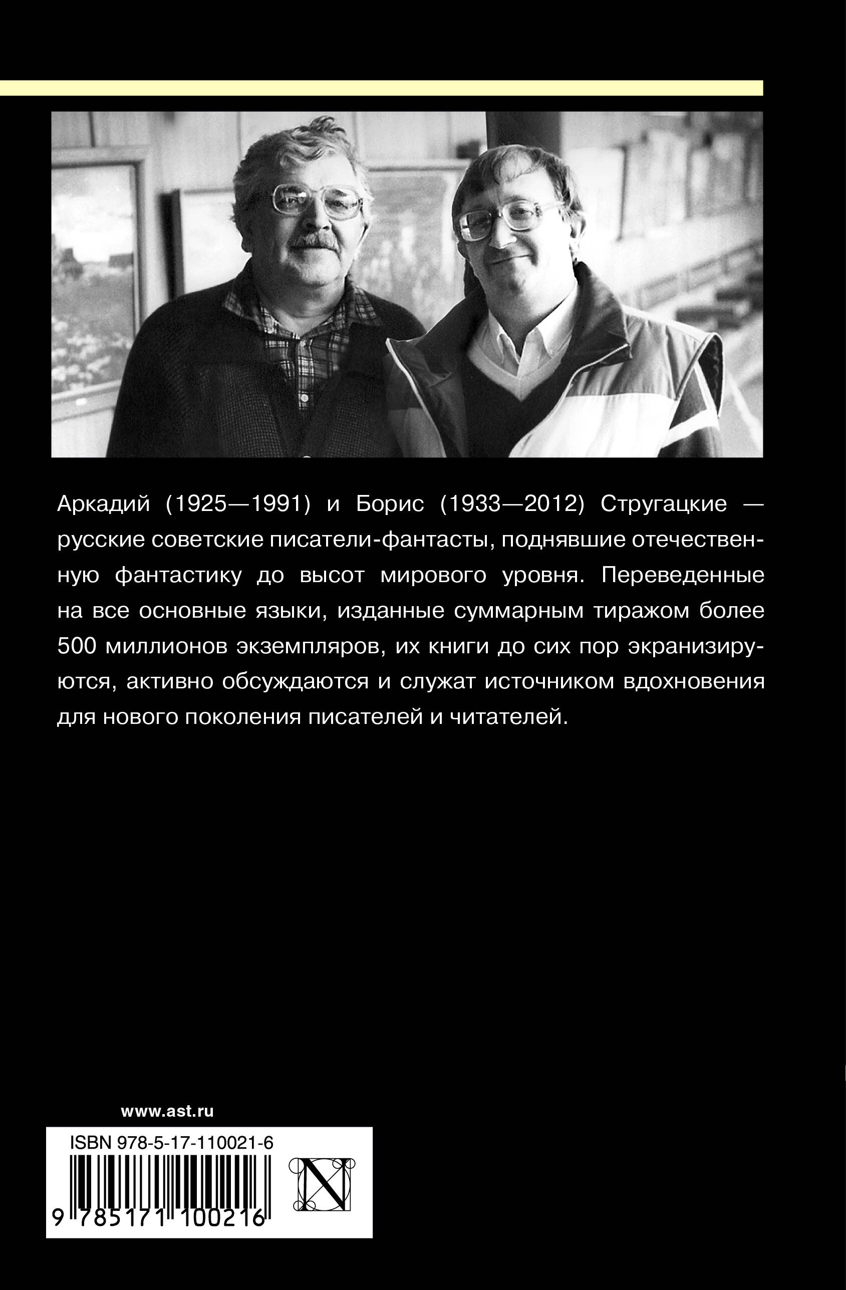 Аркадий (1925-1991) и Борис (1933-2012) Стругацкие - русские советские писатели-фантасты, поднявшие отечественную фантастику до высот мирового уровня. Переведенные на все основные языки, изданные суммарным тиражом более 500 миллионов экземпляров, их книги до сих пор экранизируются, активно обсуждаются и служат источником вдохновения для нового поколения писателей и читателей. В этот том вошли "Попытка к бегству", "Далекая Радуга", "Трудно быть богом", "Понедельник начинается в субботу" и избранные рассказы.| Издательство | ИЗДАТЕЛЬСТВО "АСТ" |