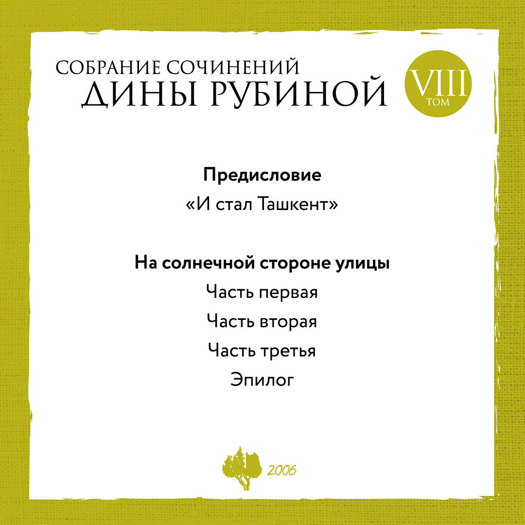 Представляем собрание сочинений Дины Рубиной. Книги изданные и специально подготовленные издательством - это настоящий подарок для читателя, который несомненно порадует качеством текста и оформления. В собрание сочинений включены как ранние произведения автора, так и последние по времени. Полноценная хронология, вдоль которой прослеживается эволюция писательского стиля и расширение географии событий, происходящих во вселенной Дины Рубиной. В восьмой том вошла проза, написанная Рубиной в 2006 году: Роман: На солнечной стороне улицы| Издательство | ООО "Издательство "Эксмо" |