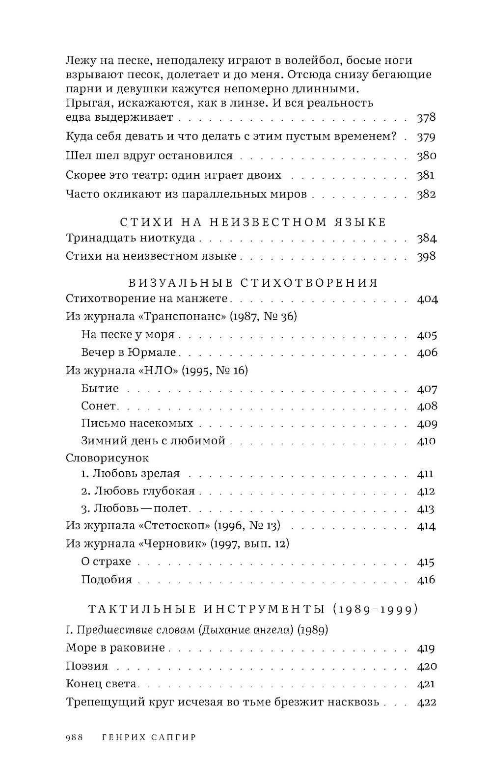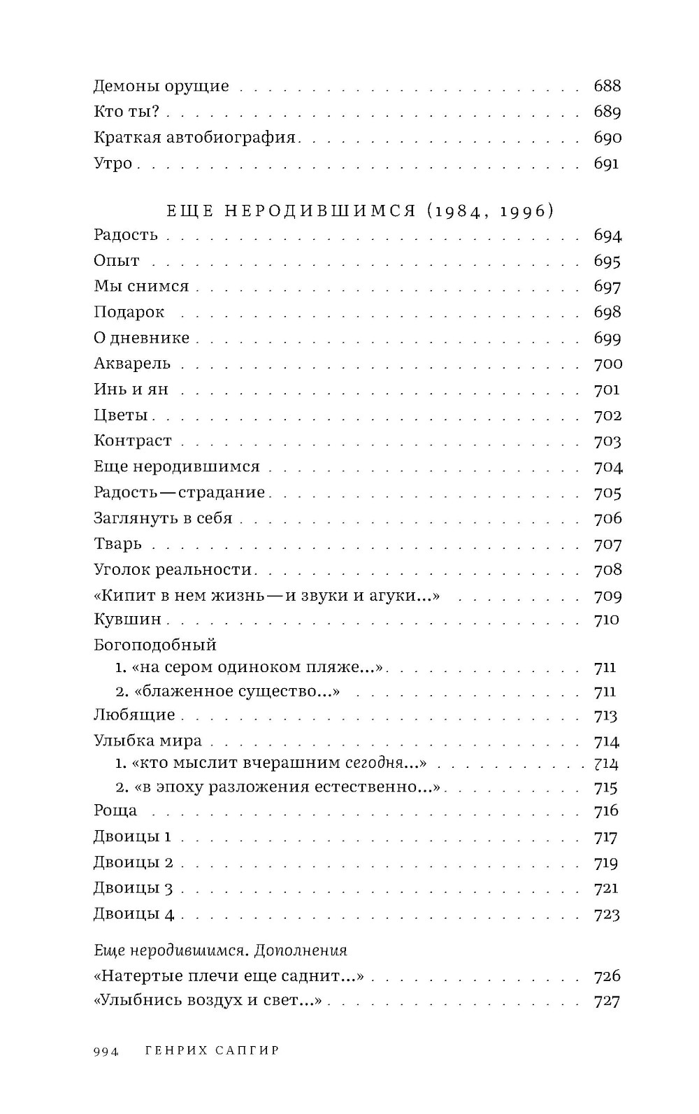 Новое собрание сочинений Генриха Сапгира - попытка не просто собрать вместе большую часть написанного замечательным русским поэтом и прозаиком второй половины ХX века, но и создать некоторый интегральный образ этого уникального (даже для данного периода нашей словесности) универсального литератора. Он не только с равным удовольствием писал для взрослых и для детей, но и словно воплощал в слове ларионовско-гончаровскую концепцию "всёчества": соединения всех известных до этого идей, манер и техник современного письма, одновременно радикально авангардных и предельно укорененных в самой глубинной национальной традиции и ведущего постоянный провокативный диалог с нею. В третьем томе собрания "Глаза на затылке" Генрих Сапгир предстает как прямой наследник авангардной традиции, поэт, не чуждый самым смелым художественным экспериментам на границах стиха и прозы, вербального и визуального, звука и смысла.