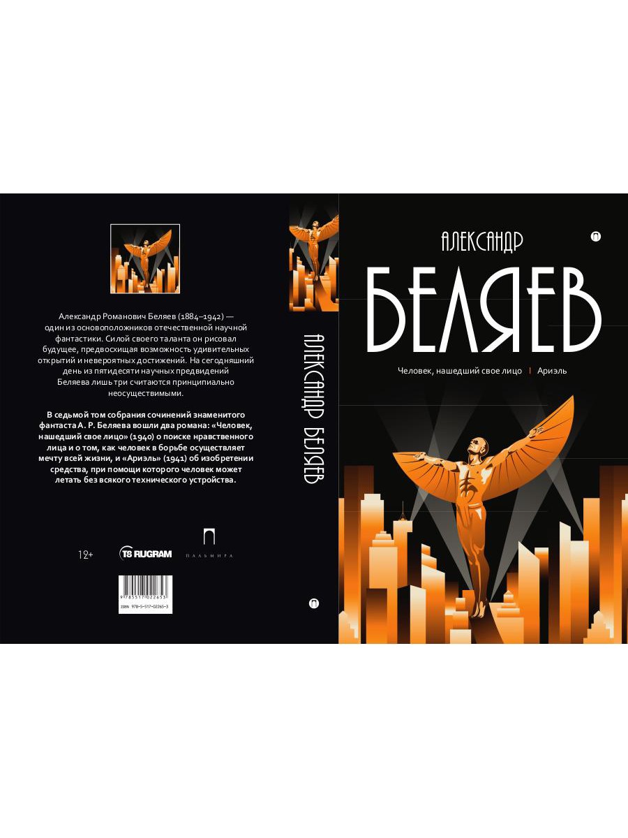 В седьмой том собрания сочинений знаменитого фантаста А. Р. Беляева вошли два романа: «Человек, нашедший свое лицо» (1940) о поиске нравственного лица и о том, как человек в борьбе осуществляет мечту всей жизни, и «Ариэль» (1941) об изобретении средства, при помощи которого человек может летать без всякого технического устройства.| Издательство | Т8 RUGRAM |