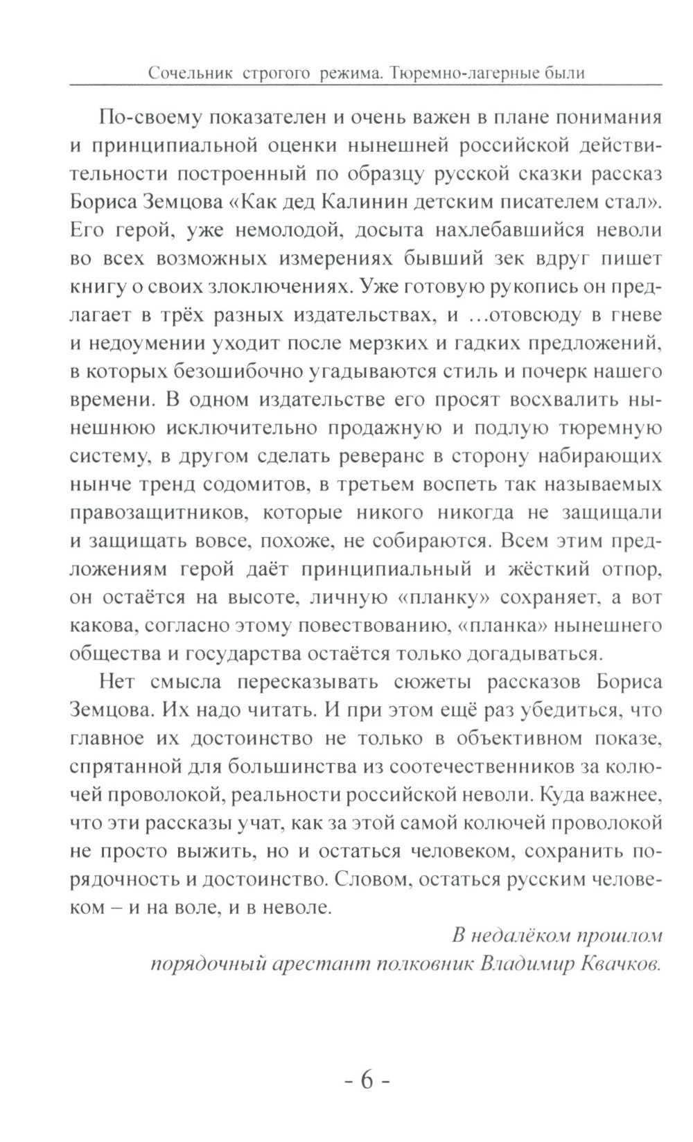 Русский доброволец Борис Земцов, воевавший в Югославии за Русское Дело, за Славянский мир, вернувшись на родину, был оклеветан «либеральным» столичным истеблишментом, по ложному навету осужден и отправлен в «зону»… В цикле тюремно-лагерных былей писатель прорисовывает нелицеприятную картину тюремного быта и объясняет единственно приемлемую систему человеческих взаимоотношений на ограниченном пространстве «казенного дома». Автор знает, о чём пишет: он прошел через это сам и видел всё изнутри.