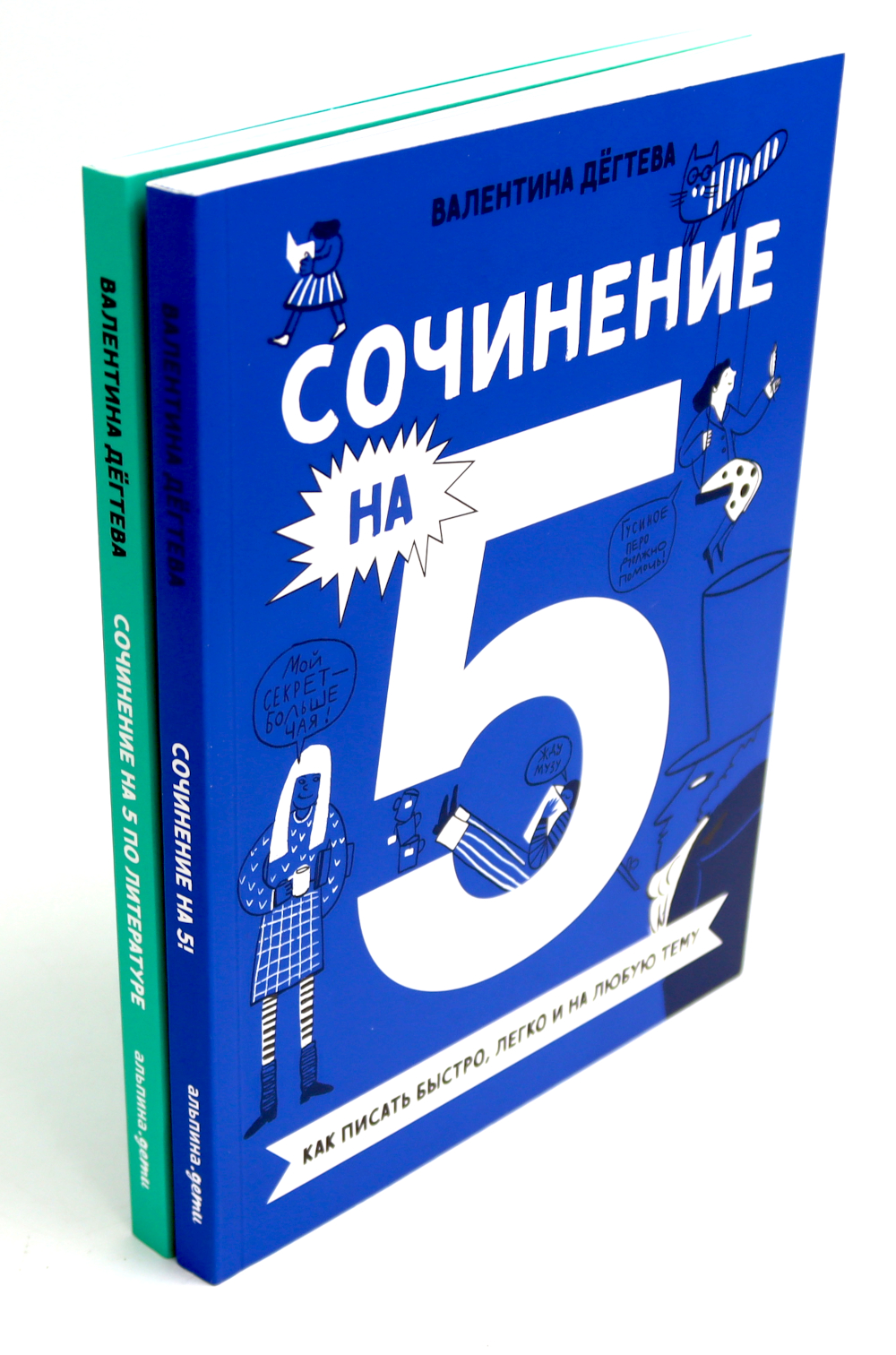 Комплект состоит из двух книг: «Сочинение на 5! Как писать быстро, легко и на любую тему» и «Сочинение на 5 по литературе». Книга «Сочинение на 5! Как писать быстро, легко и на любую тему» станет незаменимым помощником для тех школьников, которые испытывают ступор при виде чистого листа, для тех, кто пишет легко, но хочет улучшить навык, а также для родителей, которым надоело делать уроки. Вы узнаете 7 секретов качественной работы над любой предложенной темой - от «Как я провел лето» до «Евгений Онегин - эгоист поневоле». Поймете, в чем разница между сочинением-рассуждением, повествованием и описанием и как их писать, как грамотно выстроить структуру текста, как писать сочинение по картине или описывать внешность, что нужно, чтобы завладеть вниманием читателя уже во введении, интересно писать на свободную тему. А еще - как избежать ошибок, за которые снижают оценки. Автор, Валентина Дёгтева, писательница, сценарист и педагог, приводит множество примеров самых разных заданий учителей и дает интересные упражнения. Вы овладеете мастерством письменной речи и поймете, что писать совсем не сложно, а даже интересно - как общение с лучшим другом! Для детей от 10 лет. О книге «Сочинение на 5 по литературе»: Написать сочинение по литературе бывает сложнее, чем решить математическую задачу. Ведь это не просто творческий процесс: для хорошей работы нужно знать теорию литературы, историю, биографию автора, уметь приводить аргументы и делать выводы. Перед вами развернутый справочник, который содержит 7 секретов грамотных сочинений по литературе. Вы не найдете в нем готовых текстов, которые можно списать, зато узнаете, какие бывают виды композиции произведений, чем метафора отличается от метонимии, в чём заключается сравнение образов двух героев и как же ответить на вопрос «что хотел сказать автор?». А еще разберете типичные ошибки, которые допускают школьники при работе над сочинением по литературе. Это игровое и дружелюбное пособие поможет вам сформировать крепкую базу знаний, а интересные примеры и нескучные упражнения - закрепить их. Вы научитесь писать сочинения по любой заданной теме, а может даже взглянете на книги из школьной программы другими, заинтересованными глазами.| Издательство | Альпина Паблишер |