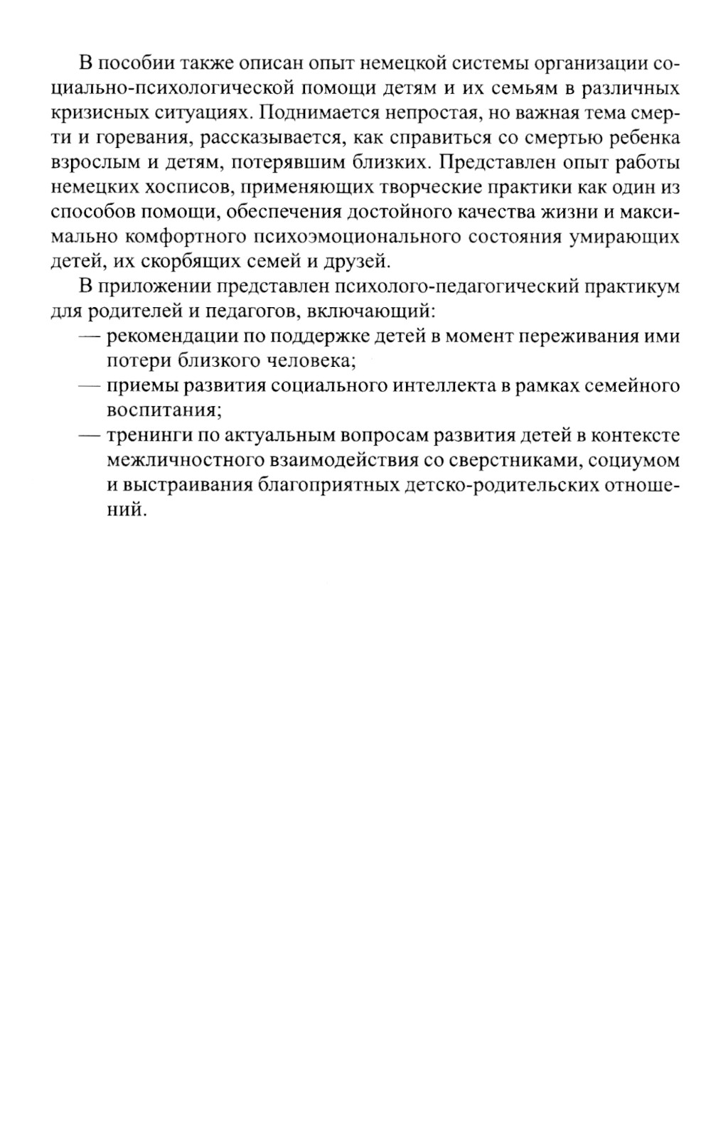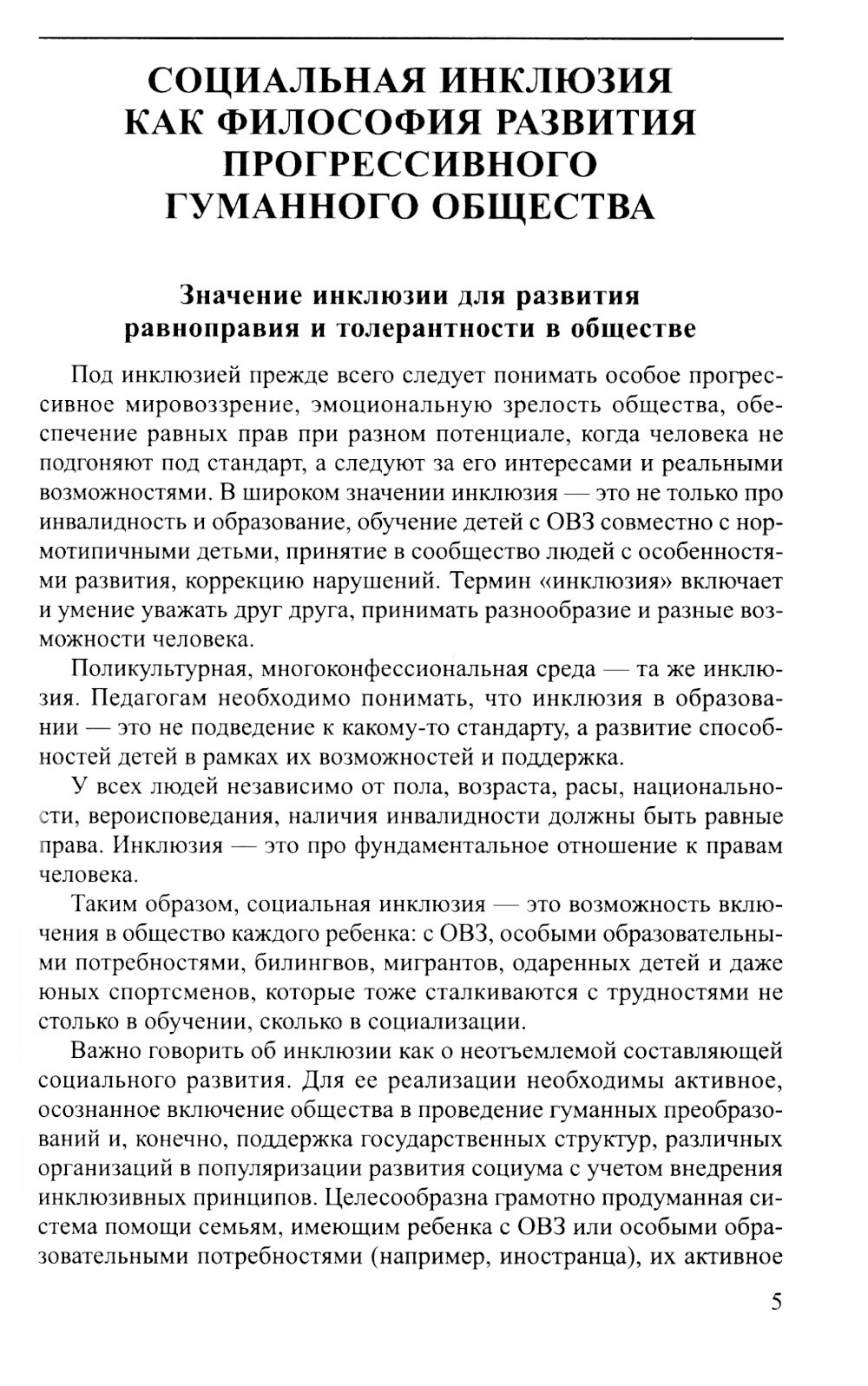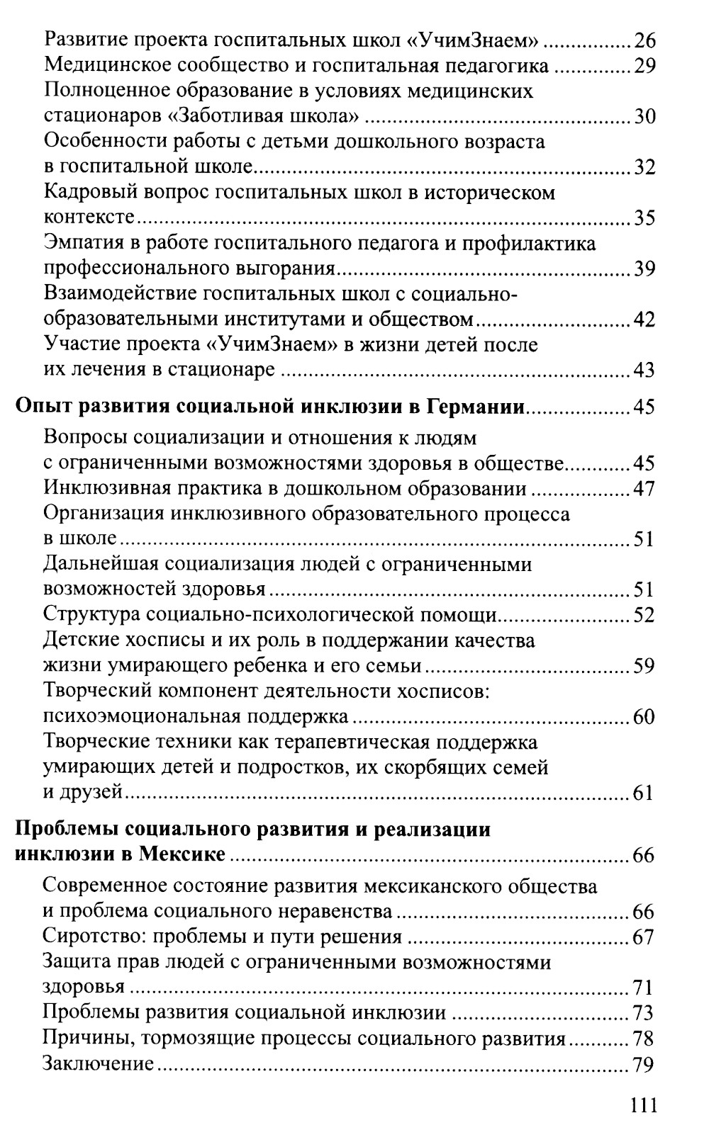 В книге представлен опыт разных стран по вопросам развития социальной инклюзии, реализации инклюзивного подхода в социальных процессах и образовании. Внимание уделяется роли эмоционального и социального интеллекта в формировании инклюзивных и толерантных принципов взаимодействия. Описан опыт междисциплинарного проекта по поддержке детей, находящихся на длительном лечении, в том числе тяжелобольных и умирающих. Поднимается тема смерти и горевания, приводятся практики, способствующие поддержке умирающих детей, их семей и друзей. Книга адресована специалистам системы образования, педагогам-психологам, родителям, студентам профильных вузов.| Издательство | Творческий центр Сфера |