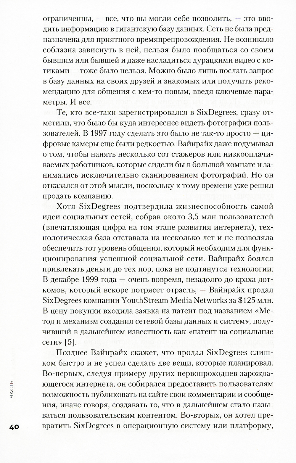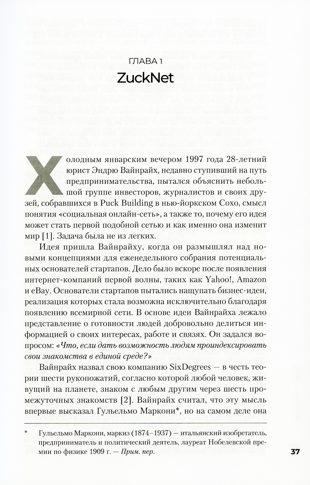 Сюжет о том, как молодой студент Гарварда придумал крупнейшую социальную сеть в мире, уже вошел в учебники по предпринимательству. Могущество и вездесущность компании Марка Цукерберга, которую в 2021 году он переименовал в Meta, невозможно отрицать. Как и за счет чего стартап стал корпорацией стоимостью более триллиона долларов? Известный журналист Стивен Леви три года общался с сотрудниками Facebook, включая самого Цукерберга и операционного директора Шерил Сэндберг, чтобы рассказать самую полную историю компании из Пало-Альто. Его книга - о невероятных успехах и фатальных неудачах, о бесконтрольной власти и шокирующих методах работы, об амбициях и идеализме людей, чей продукт изменил интернет и поставил под угрозу идею анонимности. Она о том, как шаг за шагом компания становилась частью нашего мира и что произошло, когда ей это удалось.| Издательство | Альпина |