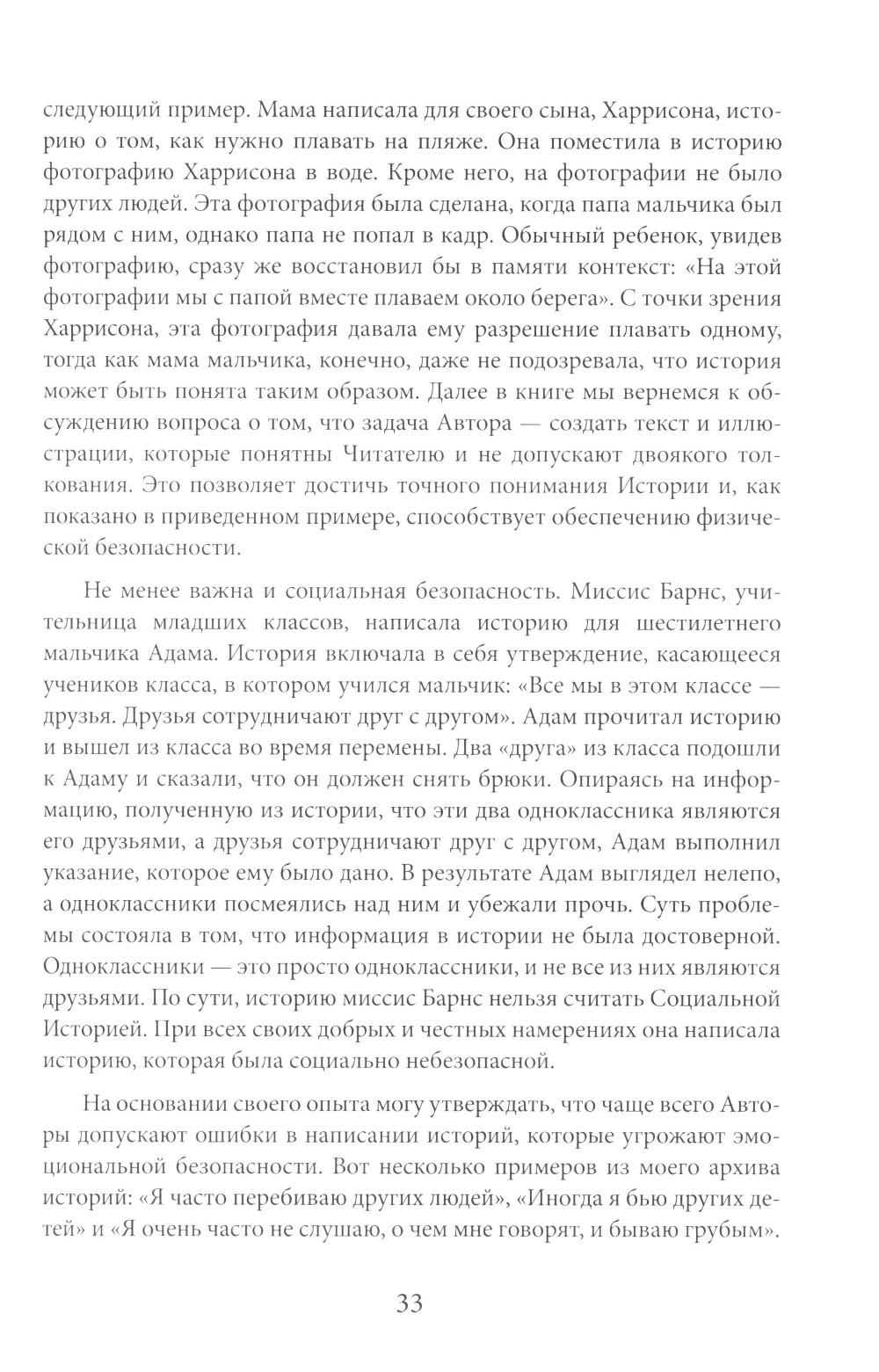 "Социальные Истории" - широко применяемая во всем мире методика, цель которой - помочь развить социальные навыки детям и подросткам с расстройствами аутистического спектра. Предлагаемое издание состоит из двух частей. Первая часть - Руководство по созданию Социальных Историй - содержит десять научно обоснованных и практически апробированных критериев, которые в целом составляют методологию создания качественных Социальных Историй с учетом всех обязательных составляющих, включая название, структурирование, стиль, и практическое применение. Вторая часть - 185 примеров Социальных Историй - поможет решить наиболее распространенные поведенческие проблемы, возникающие у детей с аутизмом дома, в школе и в общественных местах. Сочетание теоретической и практической частей дает возможность родителям и специалистам как использовать истории в готовом виде, так и создавать их самостоятельно, помогая детям легче адаптироваться к окружающему миру с первых лет жизни до подросткового возраста. Издание адресовано родителям и специалистам, которые могут применять методику автора при работе с детьми с расстройствами аутистического спектра, а также с их типично развивающимися сверстниками.| Издательство | Рама Паблишинг |