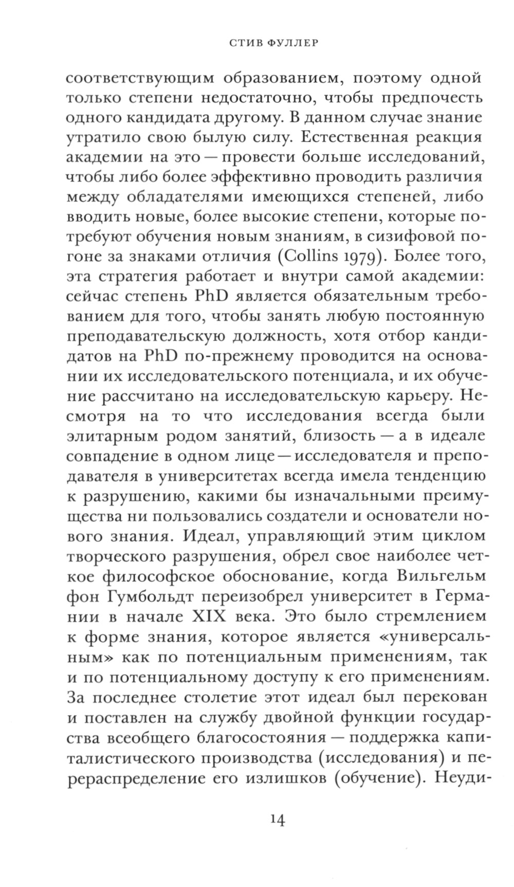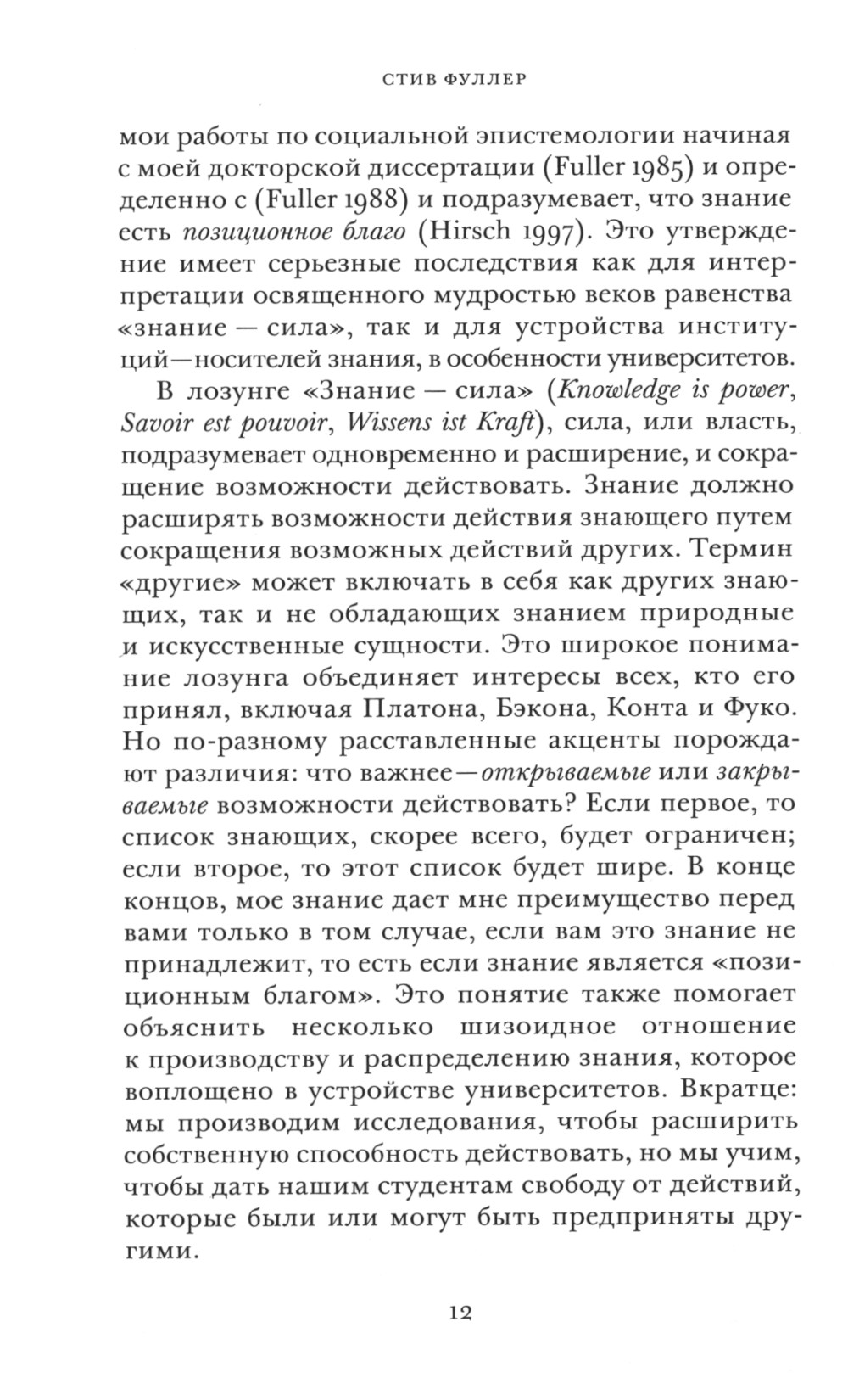 Предлагаемая книга представляет очерк социальной теории знания XXI века. С характерной тонкостью и живостью Стив Фуллер исследует мир, в котором университеты и академическая среда уже не принимаются по умолчанию как самое лучшее место для интеллектуальной жизни. Хотя автор и защищает привилегии академиков, он очень серьезно относится к историческим расхождениям между академиками и интеллектуалами, специально обращаясь к различным типам производства знания, которые среди них ценятся. В этой книге вы найдете разбор проблематичных отношений между постмодернизмом и университетом как институцией, критический обзор новых исследовательских полей социальной эпистемологии и социологии философии, дискуссию об этике и политике публичной интеллектуальной жизни, в особенности с учетом ее импровизационного (или, как называет это сам Фуллер, «пустозвонского») характера.| Издательство | Издательский дом "Дело" РАНХиГС |