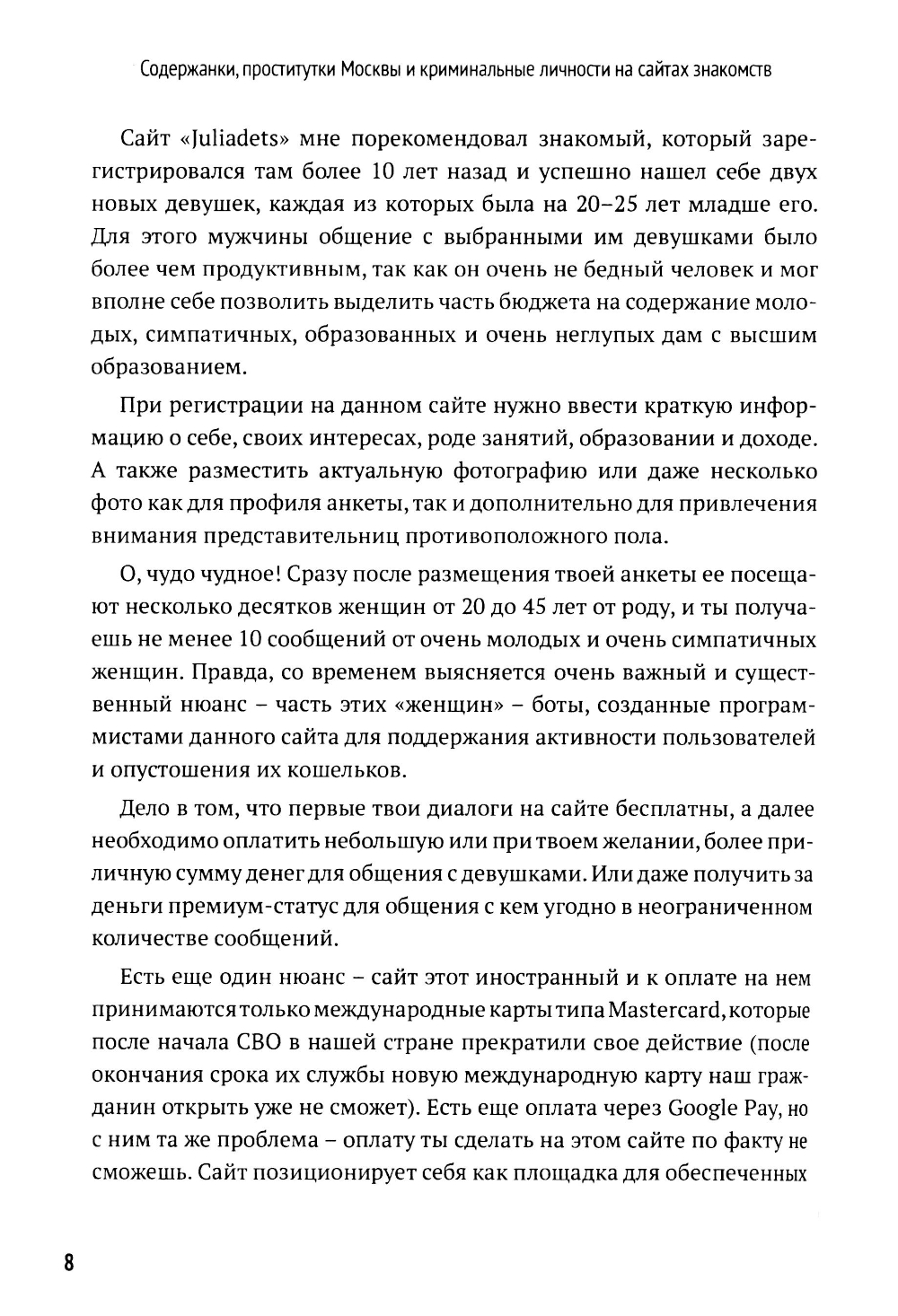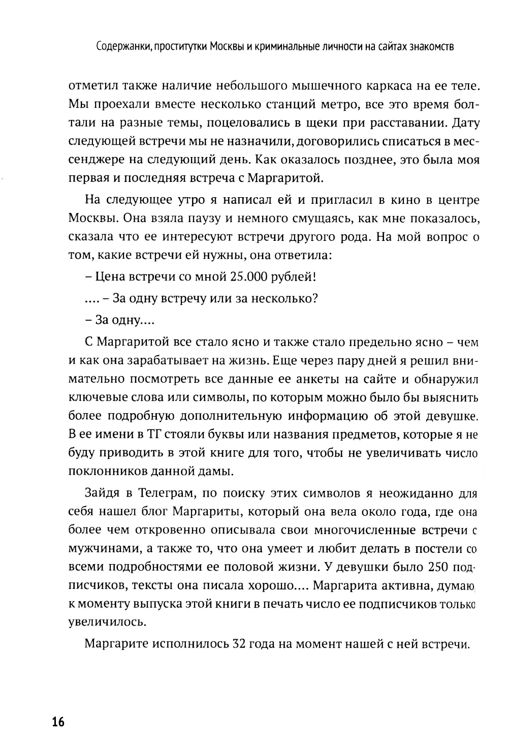 Аннотация: Содержанки, проститутки Москвы и криминальные личности на сайтах знакомств