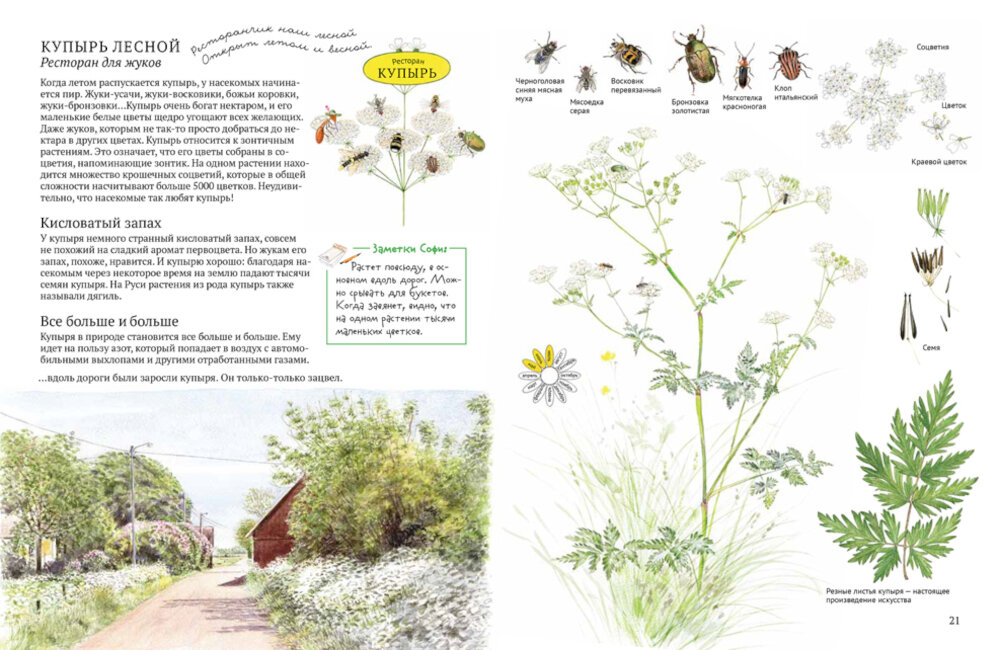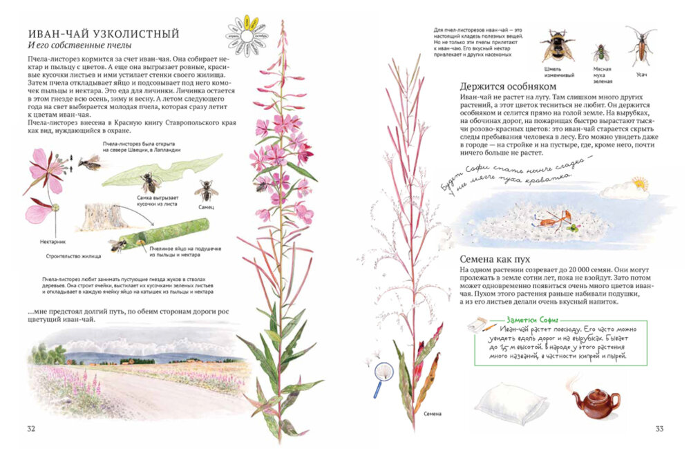 Комплект из 2 книг: Софи в мире деревьев Муравьишка Софи приглашает тебя в удивительную экспедицию. Ты узнаешь много интересного о жизни деревьев, которые мы встречаем каждый день. Знаешь ли ты, из какого дерева сделана бумага, на которой напечатана эта книжка? А из каких деревьев изготавливают музыкальные инструменты и военные корабли, зубочистки и уголь для рисования, палочки для мороженого и лыжи? Сколько лет самому старому дубу России, и почему дубы растут поодиночке? Кого боятся даже самые могучие дубы? Софи научит тебя делать деревянную дудочку и расскажет об экологически чистой и не вредной жвачке. Софи в мире цветов Муравьишка Софи приглашает тебя в путешествие по миру цветов. Как живут цветы? Каких насекомых привлекают? Существуют ли цветы, которые едят насекомых? Это лишь некоторые из вопросов, на которые Софи попытается найти ответы. Ее исследование начинается ранней весной. Вместе с Софи читатель отправится к двадцати дикорастущим растениям. Каждое из них нарисовал мастер ботанической иллюстрации, в окружении насекомых, с которыми этот цветок взаимодействует в течение своей жизни. Следуй за Софи, и ты узнаешь, как определять время по кувшинке, зачем венерин башмачок ловит пчел и почему купырь обожает выхлопные газы.| Издательство | Белая ворона/ALBUS CORVUS |