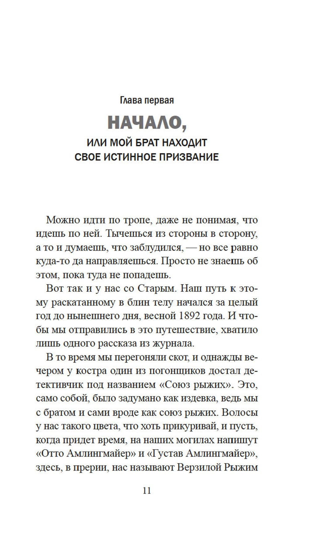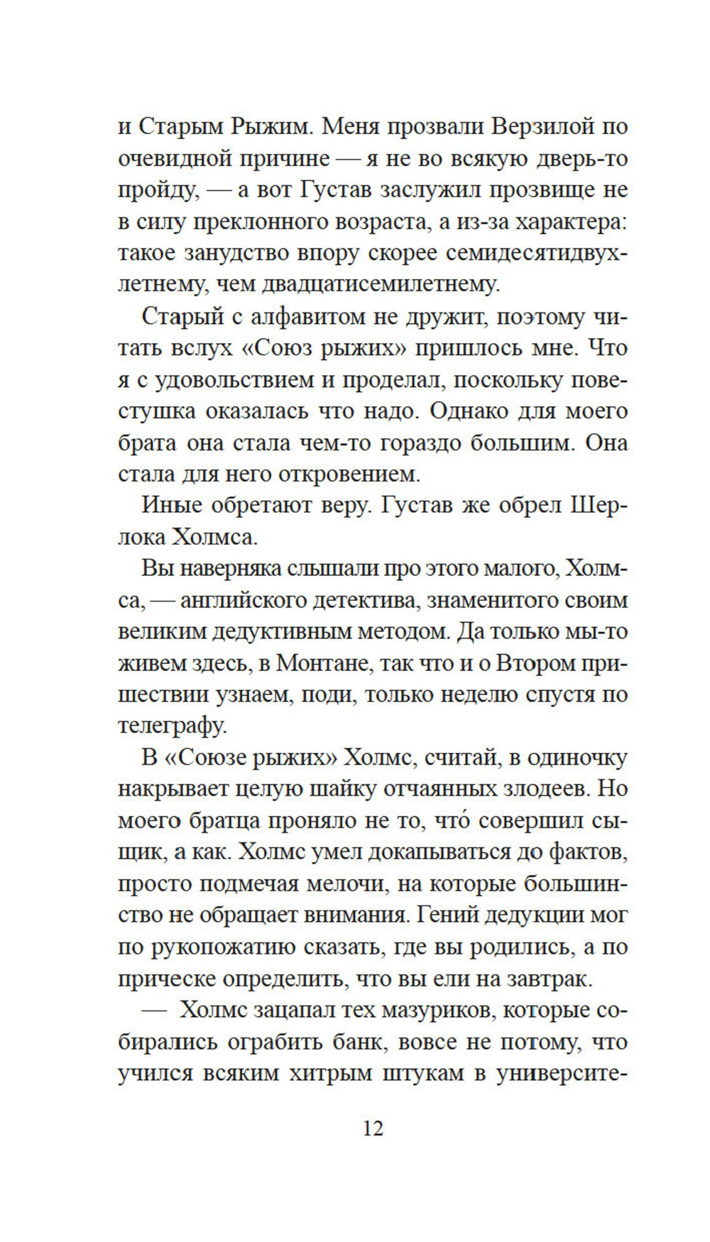 Братьев из Монтаны Густава и Отто Амлингмайеров, более известных как Старый Рыжий и Верзила Рыжий, жизнь не балует: все их родичи погибли, а им самим приходится браться за самую тяжелую работу ради пары долларов, которых едва хватает на пропитание. Но однажды безрадостное существование двух ковбоев озаряет свет: они знакомятся с рассказами о Шерлоке Холмсе. Теперь Густав полон решимости пойти по стопам своего кумира, и вскоре ему представляется шанс проявить способности к дедукции: братьев нанимают на загадочное ранчо, полное тайн - и покойников... Эта взрывная смесь исторического вестерна, детектива и водевиля поражает воображение дерзостью замысла и отточенным стилем.| Издательство | Иностранка |