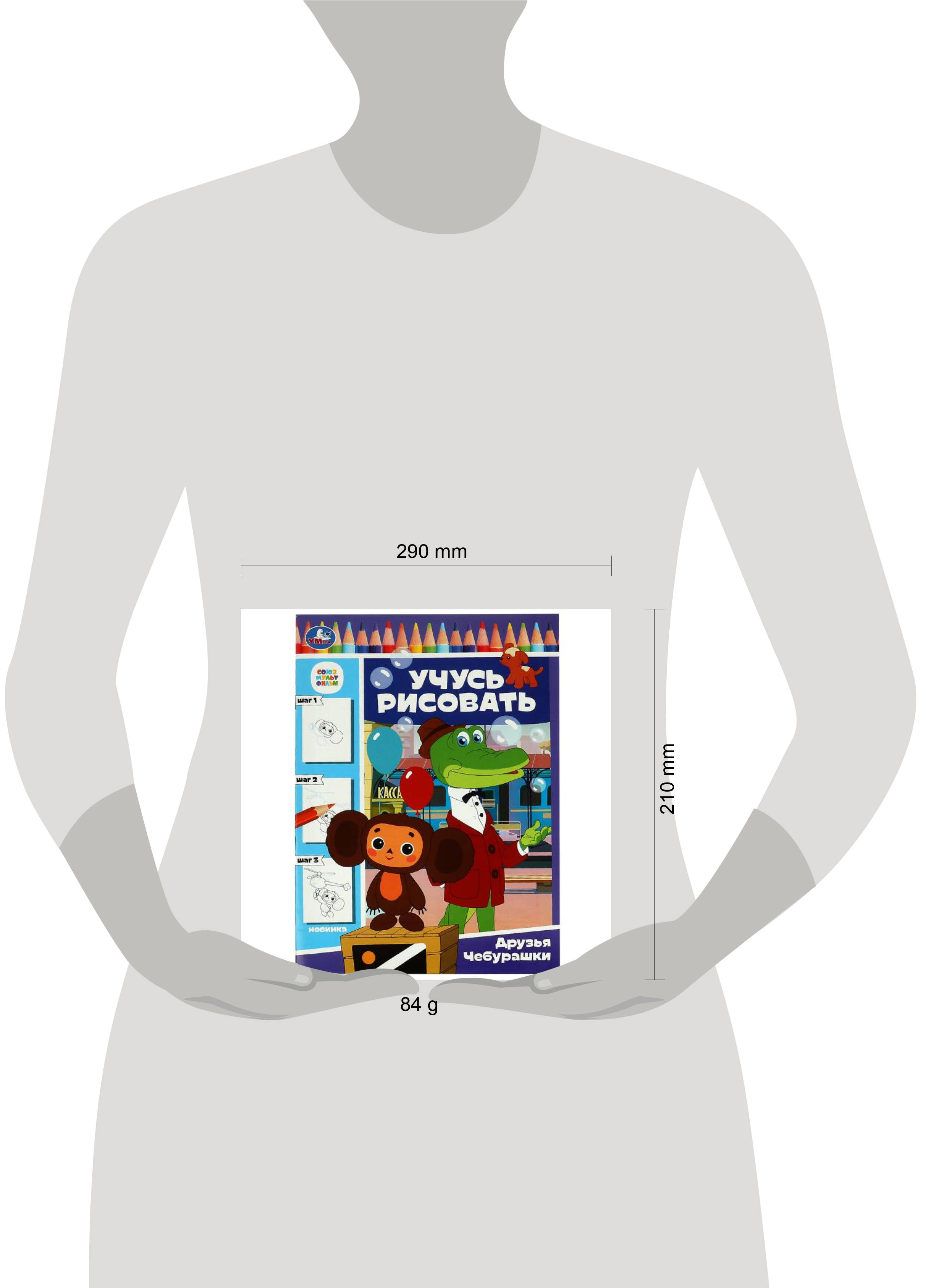 Аннотация: Союзмультфильм. Друзья Чебурашки. Учусь рисовать. 210х290 мм. Скрепка. 16 стр. Умка в кор.50шт