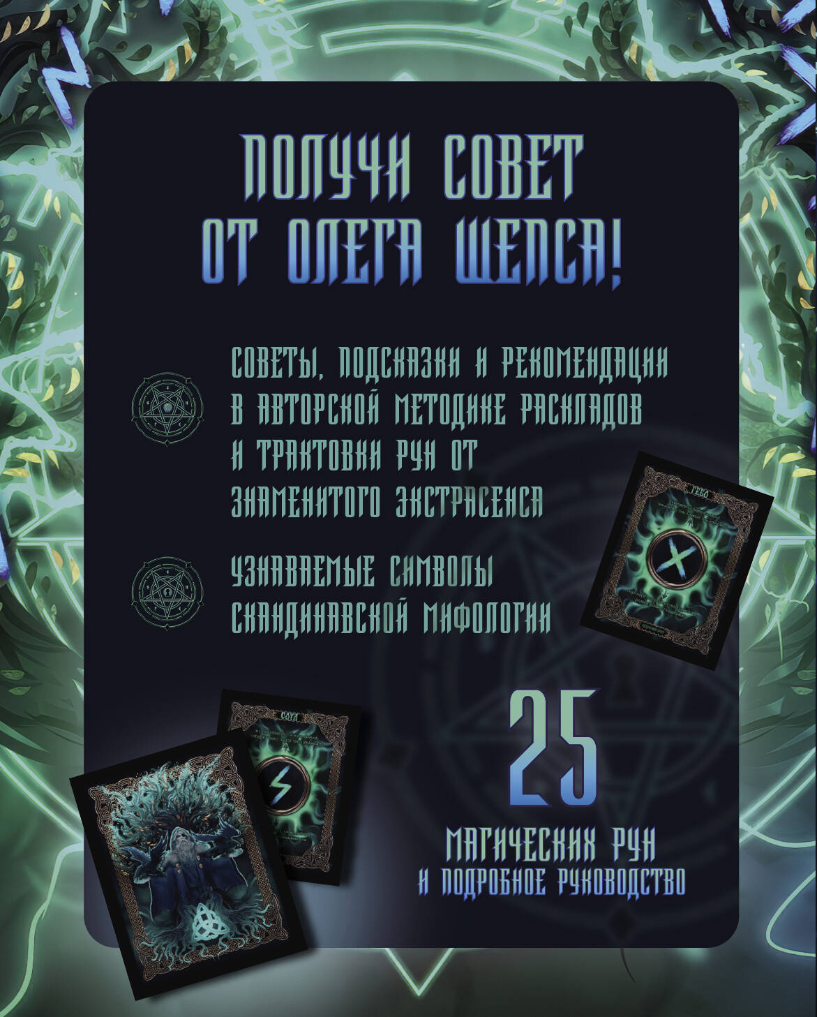 Получи совет от Олега Шепса! Колода рунических карт от Олега Шепса, экстрасенса и победителя главных мистических телешоу, открывает мир рунических карт. Уникальный инструмент для получения советов, подсказок и рекомендаций. Авторская методика раскладов и трактовка символов позволяет глубже понять себя и окружающий мир. В комплекте 25 магических скандинавских рун и подробное руководство для самопознания и поиска ответов на жизненные вопросы.| Издательство | Издательство "АСТ" |