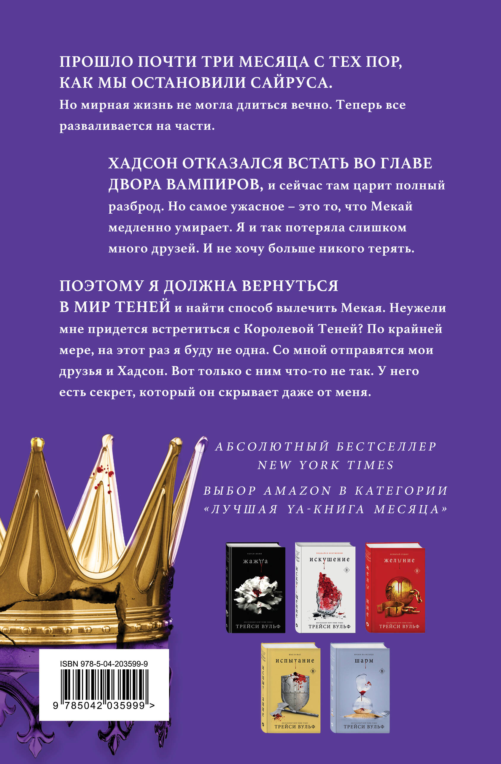 Бестселлер The New York Times! Долгожданный финал самой популярной современной вампирской серии! Узнайте чем закончится история Грейс и Хадсона в академии Кэтмир в 6-й книге. Выбор Amazon в категории «Лучшая YA-книга месяца»! Самая популярная вампирская сага последних лет. Прошло почти три месяца с тех пор, как мы остановили Сайруса. Но мирная жизнь не могла длиться вечно. Теперь все разваливается на части. Хадсон отказался встать во главе Двора Вампиров, и сейчас там царит полный разброд. Но самое ужасное - это то, что Мекай медленно умирает. Я и так потеряла слишком много друзей. И не хочу больше никого терять. Поэтому я должна вернуться в Мир Теней и найти способ вылечить Мекая. Неужели мне придется встретиться с Королевой Теней? По крайней мере, на этот раз я буду не одна. Со мной отправятся мои друзья и Хадсон. Вот только с ним что-то не так. У него есть секрет, который он скрывает даже от меня. Для поклонников «Сумерек» и «Дневников вампира». Об авторе Трейси Вульф - американская писательница, автор бестселлеров New York Times и USA Today. В прошлом преподавала английский язык и литературу, сейчас полностью посвятила себя писательству. Любит создавать загадочные и романтические истории с непростыми героями и крутыми героинями. Обожает вампиров, драконов и всяких жутких ночных тварей.| Издательство | ООО "Издательство "Эксмо" |