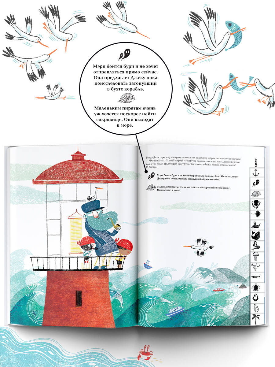 Джек и Мэри очень любят играть в пиратов. И вот удача - к ним в руки попадает самое настоящее письмо с картой сокровищ! Отправляйтесь за сокровищами вместе с маленькими пиратами, побывайте на разных островах, поплавайте на старинном корабле и подводной лодке и раскройте тайну Грозы Морей! А если что-то пойдёт не так - всегда можно начать с начала. Перед вами не просто книга. Это целое интерактивное приключение-игра, где вы сами можете выбрать финал! Выбирайте варианты действий, переходите по нужным меткам и пишите свою собственную историю!| Издательство | ИЗДАТЕЛЬСТВО "АСТ" |