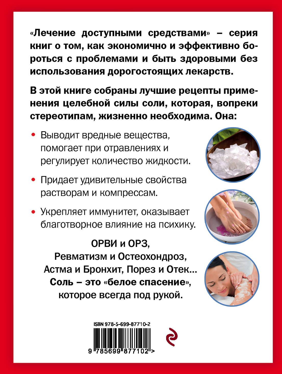 Забудьте, что соль - это "белая смерть" и поверьте, что все как раз наоборот. Это единственный продукт в нашем рационе, который ничем нельзя заменить. Существуют: поваренная, морская, йодированная, английская и розовая гималайская соли, так вот книга о том, как правильно выбрать, без усилий найти и применить чтобы добиться желаемого результата: похудеть, разгладить морщины, сделать так, чтобы сустав не болел или исчез остеохондроз. Ведущий натуролог Геннадий Кибардин расскажет, как грамотно применять соль для избавления от многих, в том числе тяжелых заболеваний, без походов в аптеку и побочных эффектов.| Издательство | 00000000-0000-0000-0000-000000000000 |