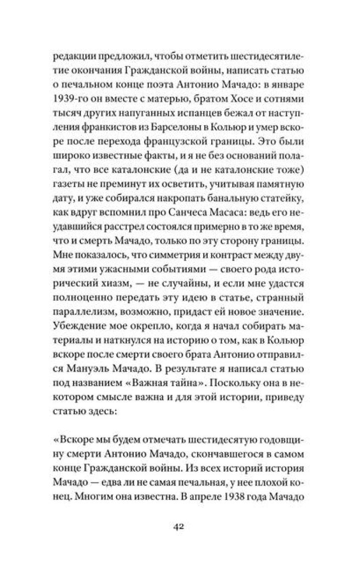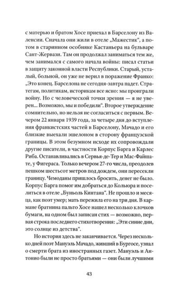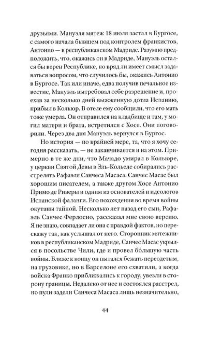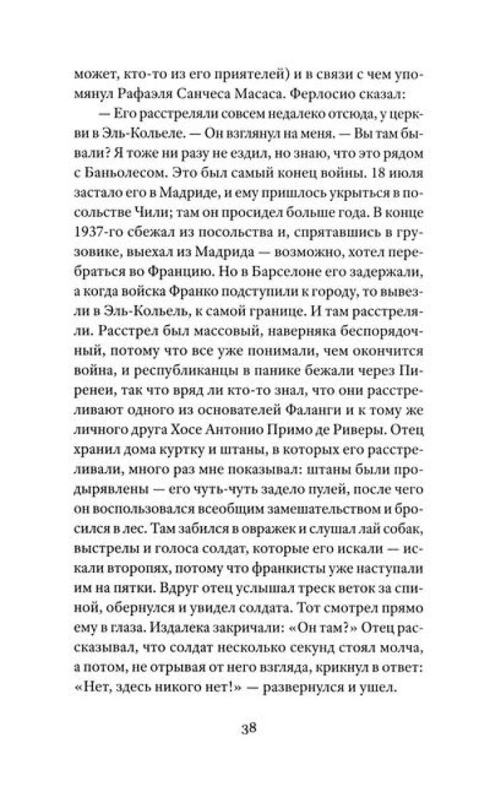 В последние месяцы гражданской войны в Испании республиканские войска отступают к французской границе. В числе пленных, приговоренных к расстрелу, оказывается Рафаэль Санчес Масас - основатель и идеолог Фаланги, один из виновников этого братоубийственного конфликта. Санчес Масас чудом избегает смерти: безымянный республиканец решает пощадить его. Историю спасения Масаса пытается восстановить молодой журналист, намеренный разобраться в загадочных судьбах ее участников. Но неожиданное открытие меняет ход его поисков: подлинный смысл рассказа оборачивается тем, чего меньше всего ждешь. «Солдаты Саламина» - роман о войне, милосердии и поиске правды, связывающий исторические события и глубокие размышления о человеческой природе.| Издательство | Изд. Ивана Лимбаха |