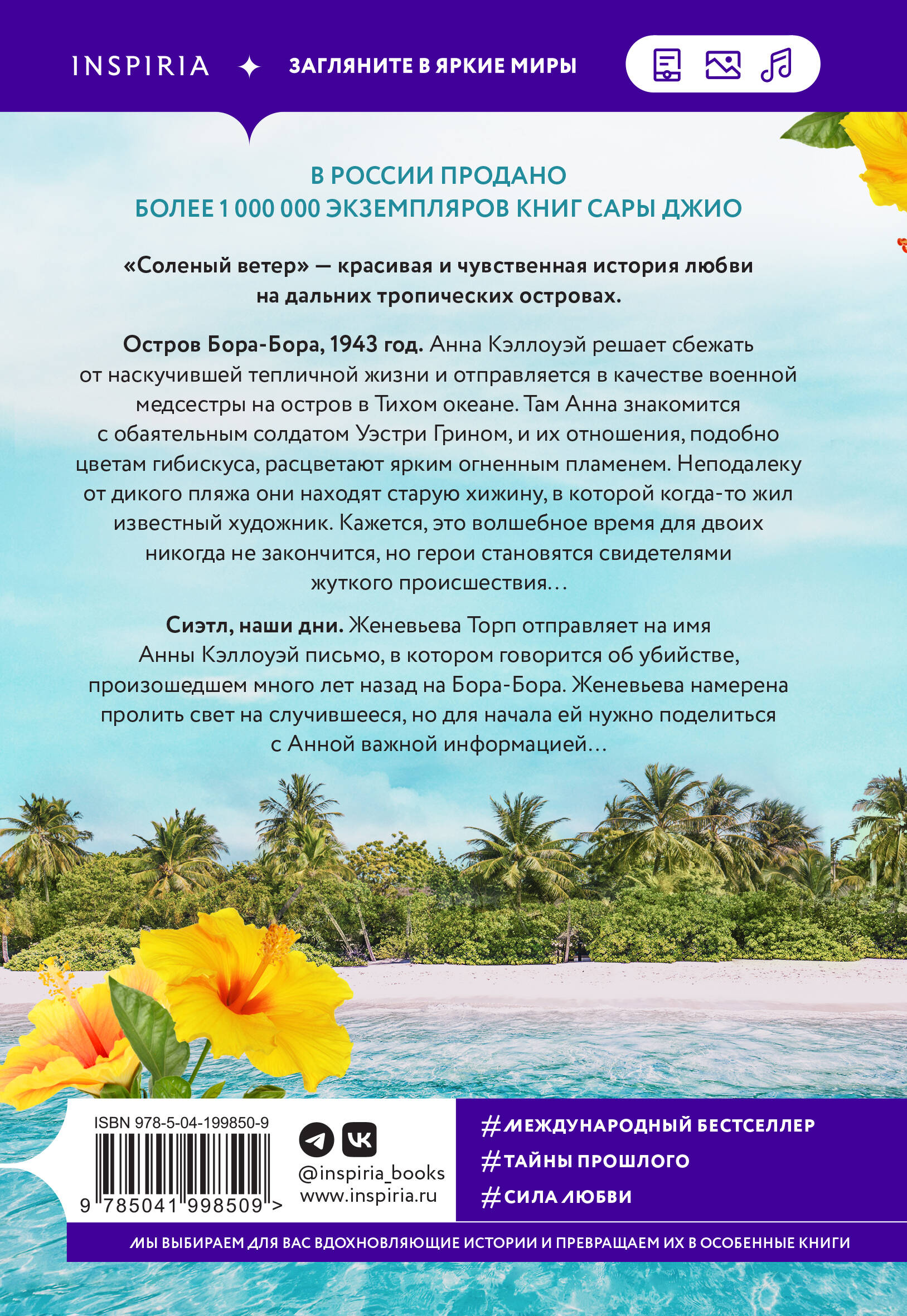 «Соленый ветер» - красивая и чувственная история любви на дальних тропических островах. Любимый автор в новом оформлении: покет большого формата с сияющей фольгой, запечатанными клапанами и дополнительными материалами к книге. В РОССИИ ПРОДАНО БОЛЕЕ 1 000 000 ЭКЗЕМПЛЯРОВ КНИГ САРЫ ДЖИО. Остров Бора-Бора, 1943 год. Анна Кэллоуэй решает сбежать от наскучившей тепличной жизни и отправляется в качестве военной медсестры на остров в Тихом океане. Там Анна знакомится с обаятельным солдатом Уэстри Грином, и их отношения, подобно цветам гибискуса, расцветают ярким огненным пламенем. Неподалеку от дикого пляжа они находят старую хижину, в которой когда-то жил известный художник. Кажется, это волшебное время для двоих никогда не закончится, но герои становятся свидетелями жуткого происшествия... Сиэтл, наши дни. Женевьева Торп отправляет на имя Анны Кэллоуэй письмо, в котором говорится об убийстве, произошедшем много лет назад на Бора-Бора. Женевьева намерена пролить свет на случившееся, но для начала ей нужно поделиться с Анной важной информацией… «Идеальная книга для отдыха». - Glamour| Издательство | ООО "Издательство "Эксмо" |