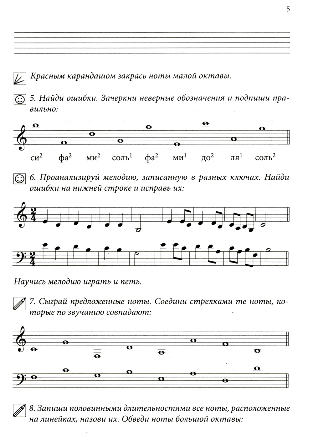 Рабочая тетрадь по сольфеджио для первого класса входит в серию рабочих тетрадей по сольфеджио для всех классов ДМШ и ДШИ и адресована самому широкому кругу читателей. Являясь логическим продолжением учебника Ю. Фроловой "Сольфеджио" для 1 класса, она может быть использована в качестве дополнительного учебного пособия. Составленная на основе традиционных программных требований, рабочая тетрадь может быть рекомендована и в качестве самостоятельного издания всем преподавателям, желающим привить интерес обучающимся к письменным заданиям и сделать содержание уроков наиболее понятным и доступным. Призванная оптимизировать учебный процесс и стать верным помощником на пути освоения курса сольфеджио, рабочая тетрадь станет интересной для .четей и их родителей, а также - в качестве самоучителя - для всех желающих постичь основы музыкальной грамоты.