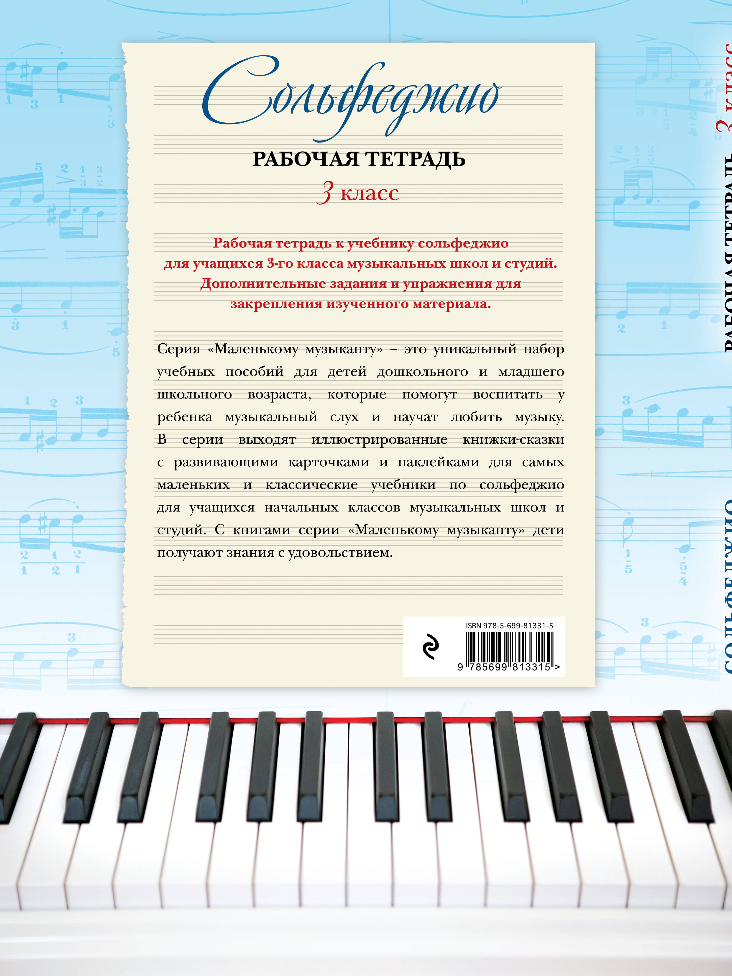 О серии: Серия «Маленький музыкант» это уникальный набор учебных пособий для детей дошкольного и младшего школьного возраста, которые помогут воспитать у ребенка музыкальный слух и научат любить музыку. В серии выходят иллюстрированные книжки-сказки с развивающими карточками и наклейками для самых маленьких и классические учебники по сольфеджио для учащихся начальных классов музыкальных школ и студий. С книгами серии «Маленький музыкант» дети получают знания с удовольствием. О книге: Рабочая тетрадь к учебнику Сольфеджио для учащихся 3 класса музыкальных школ и студий станет незаменимым помощником в закреплении изученного на уроке материала. Рабочая тетрадь позволит учителю предложить ученику разнообразные дополнительные упражнения, а родителям - помочь ребенку повторить изученный материал дома.| Издательство | ООО "Издательство "Эксмо" |