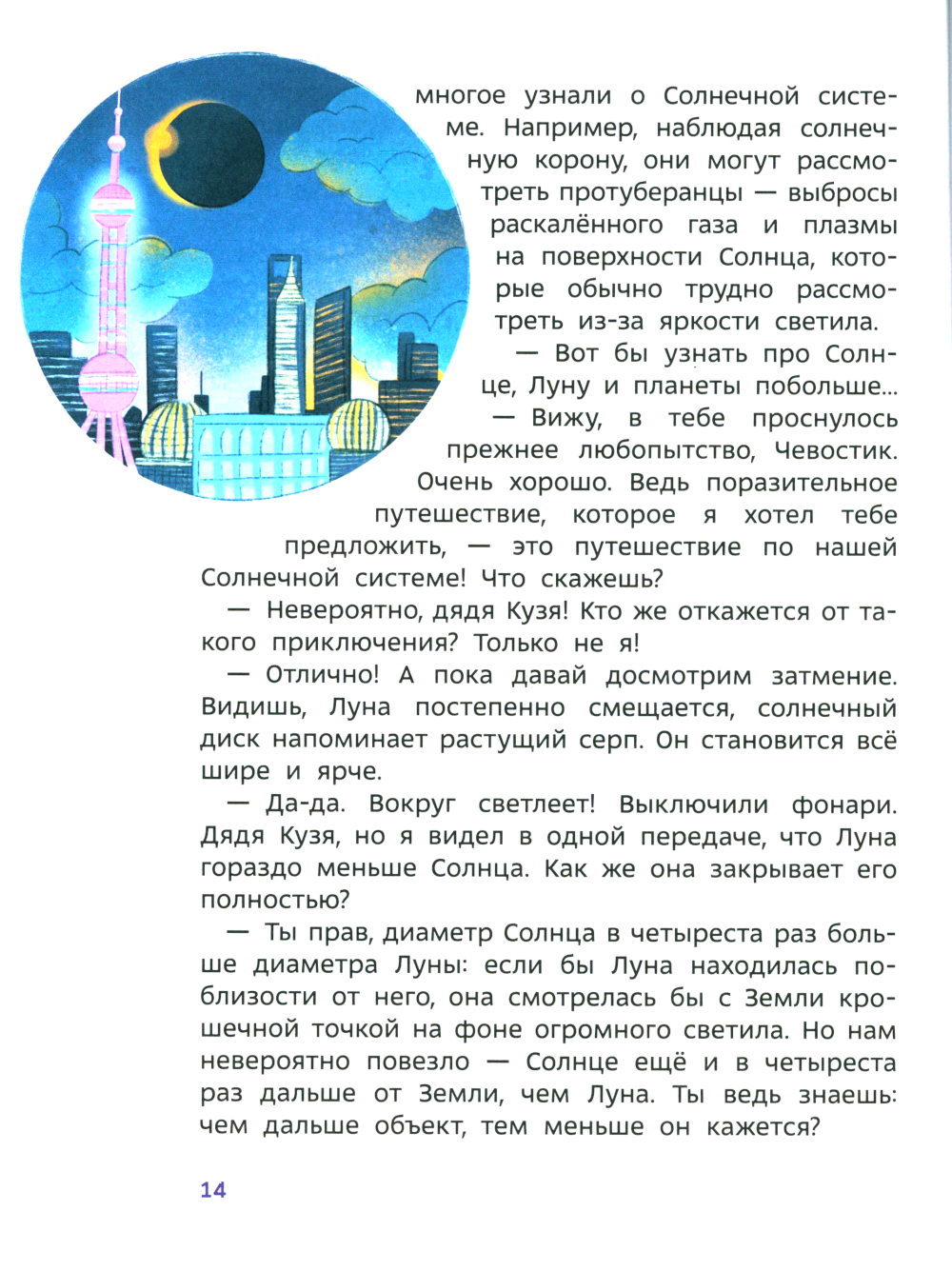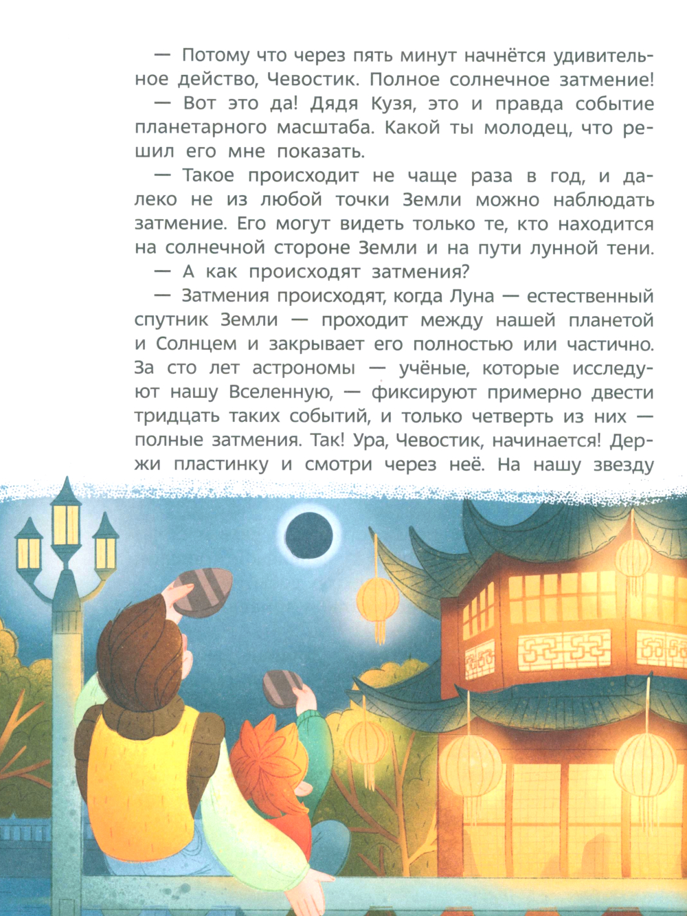 Чевостик и дядя Кузя отправляются в настоящее космическое путешествие! Они исследуют Солнечную систему, побывают на планетах, увидят их спутники, полюбуются на Землю со стороны, а еще выяснят, сложно ли пролететь через пояс астероидов, у какой планеты больше всего спутников и где заканчивается Солнечная система. Герои узнают, как люди изучали космос в древности и в наши дни и совершат множество открытий. Кто такой Чевостик? Чевостик - симпатичный герой из известного аудиопроекта. Сегодня ребята знают его по энциклопедиям. В серии продолжают выходить книги, которые объясняют детям устройство мира. Дети гораздо лучше воспринимают информацию, когда о мире им рассказывает какой-нибудь сказочный персонаж. Именно поэтому девчонки и мальчишки так любят подобные энциклопедии. Чевостик вместе с дядей Кузей совершает удивительные путешествия в мир наук: физики, химии, астрономии, анатомии, геологии и других. Он рассказывает детям о великих географических открытиях, покорении космоса и волшебных химических превращениях.| Издательство | Манн, Иванов и Фербер |