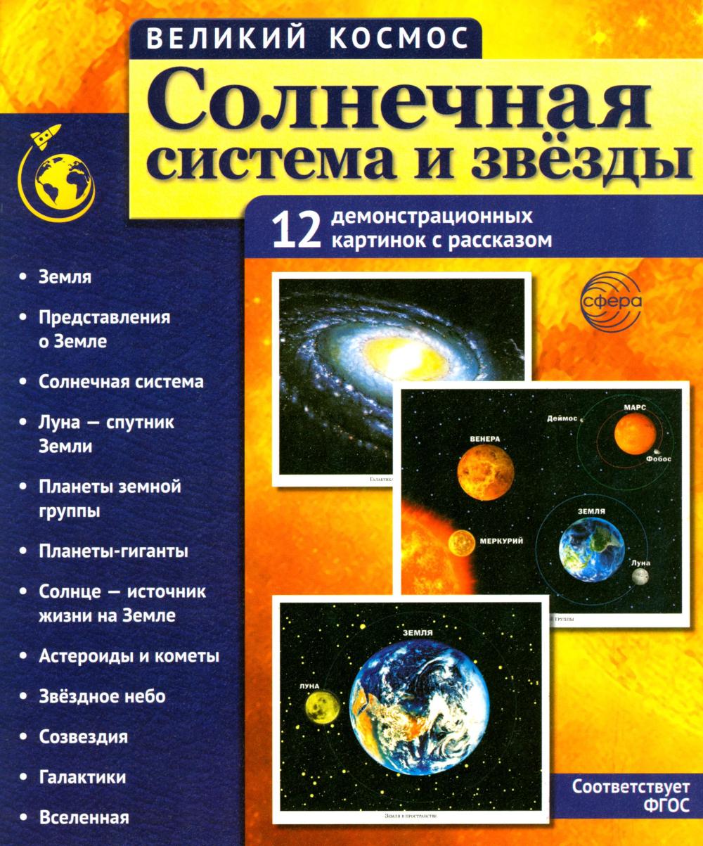 Аннотация: Солнечная система и звезды. Наглядно-методическое пособие. 2-е изд., испр (12 демонстрационных картинок)