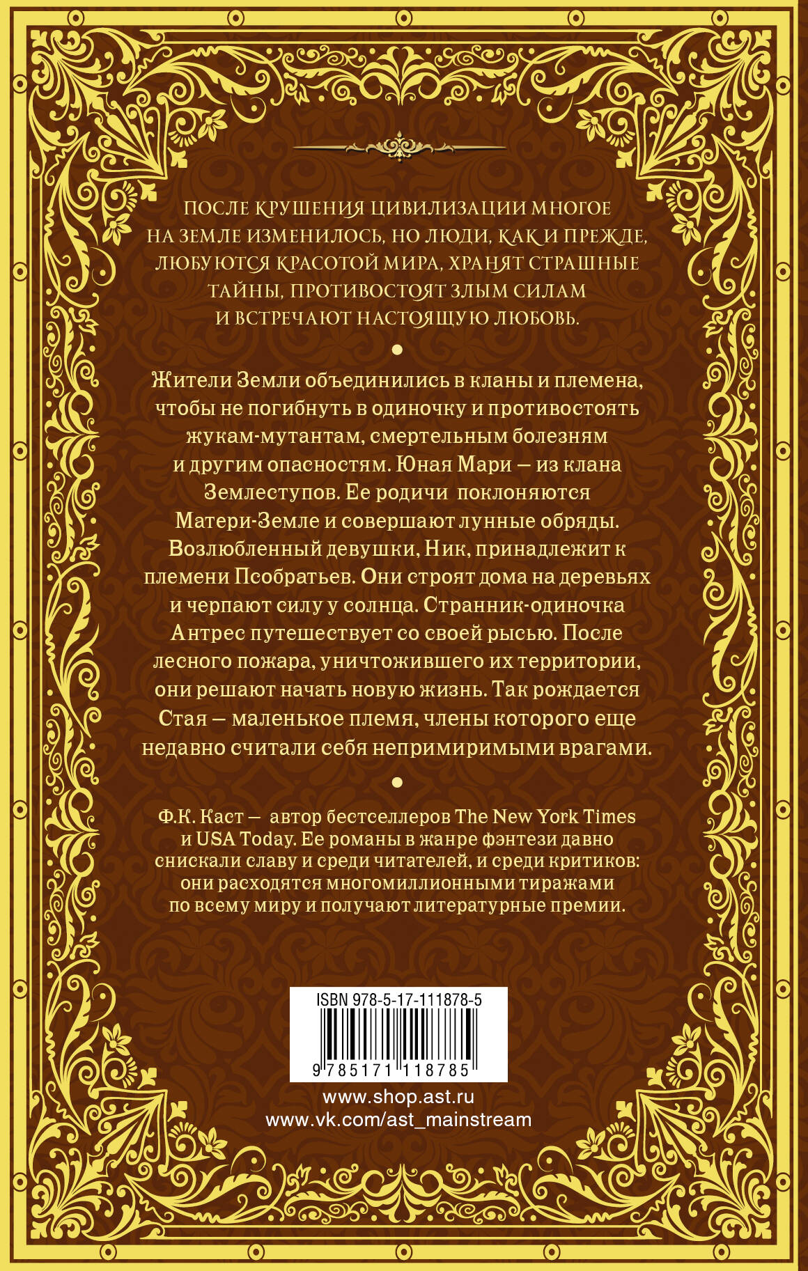 Жители Земли объединились в кланы и племена, чтобы не погибнуть в одиночку и противостоять жукам-мутантам, смертельным болезням и другим опасностям. Юная Мари - из клана Землеступов. Ее родичи поклоняются Матери-Земле и совершают лунные обряды. Возлюбленный девушки, Ник, принадлежит племени Псобратьев. Они строят дома на деревьях и черпают силу солнца. Странник-одиночка Антрес путешествует со своей рысью. После лесного пожара, уничтожившего их территории, они решают начать новую жизнь. Так рождается Стая - маленькое племя, члены которого еще недавно считали себя непримиримыми врагами.| Издательство | ИЗДАТЕЛЬСТВО "АСТ" |