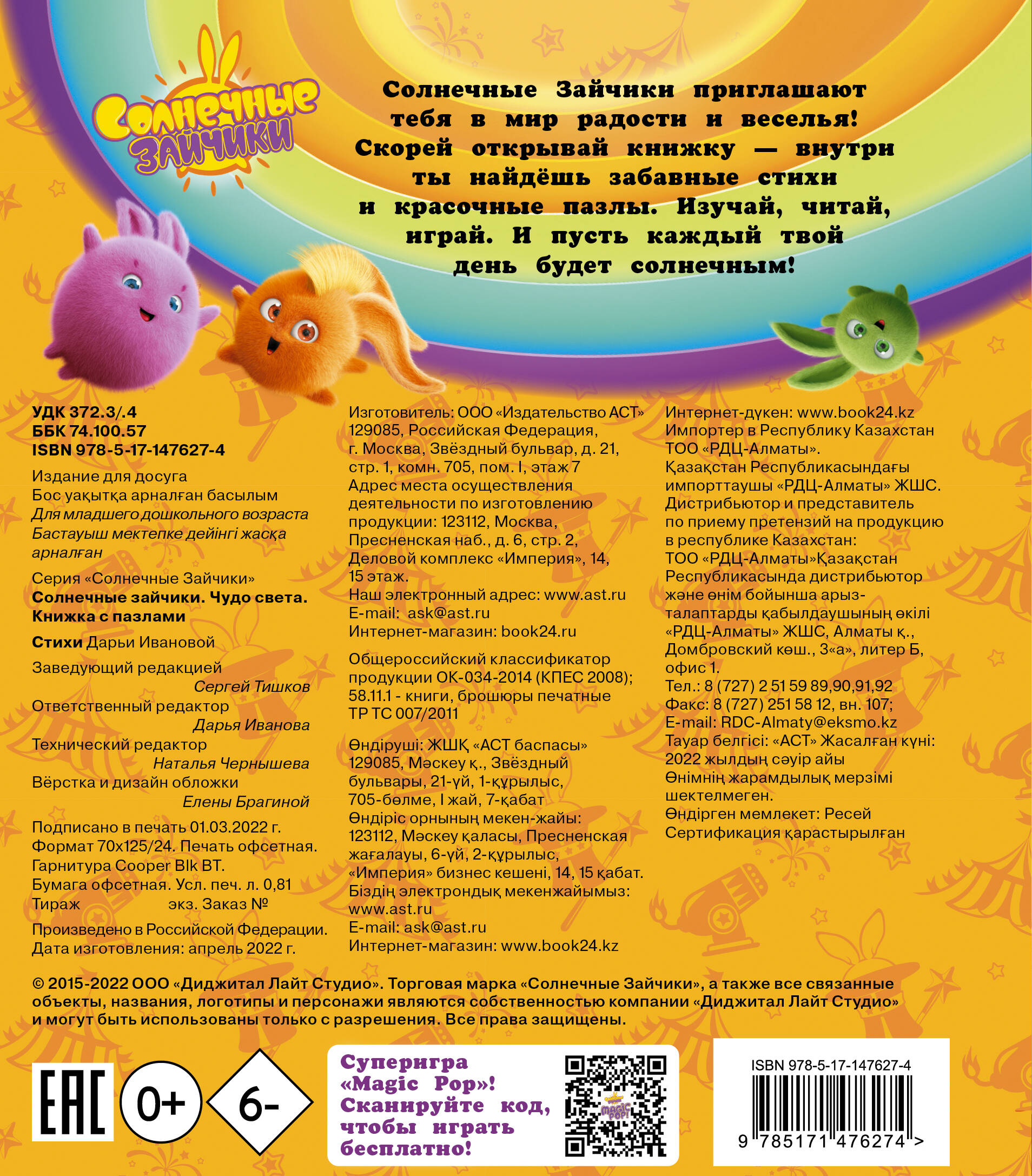 Солнечные Зайчики приглашают тебя в мир радости и веселья! Скорей открывай книжку - внутри ты найдёшь забавные стихи и красочные пазлы. Изучай, читай, играй. И пусть каждый твой день будет солнечным!| Издательство | АСТ |