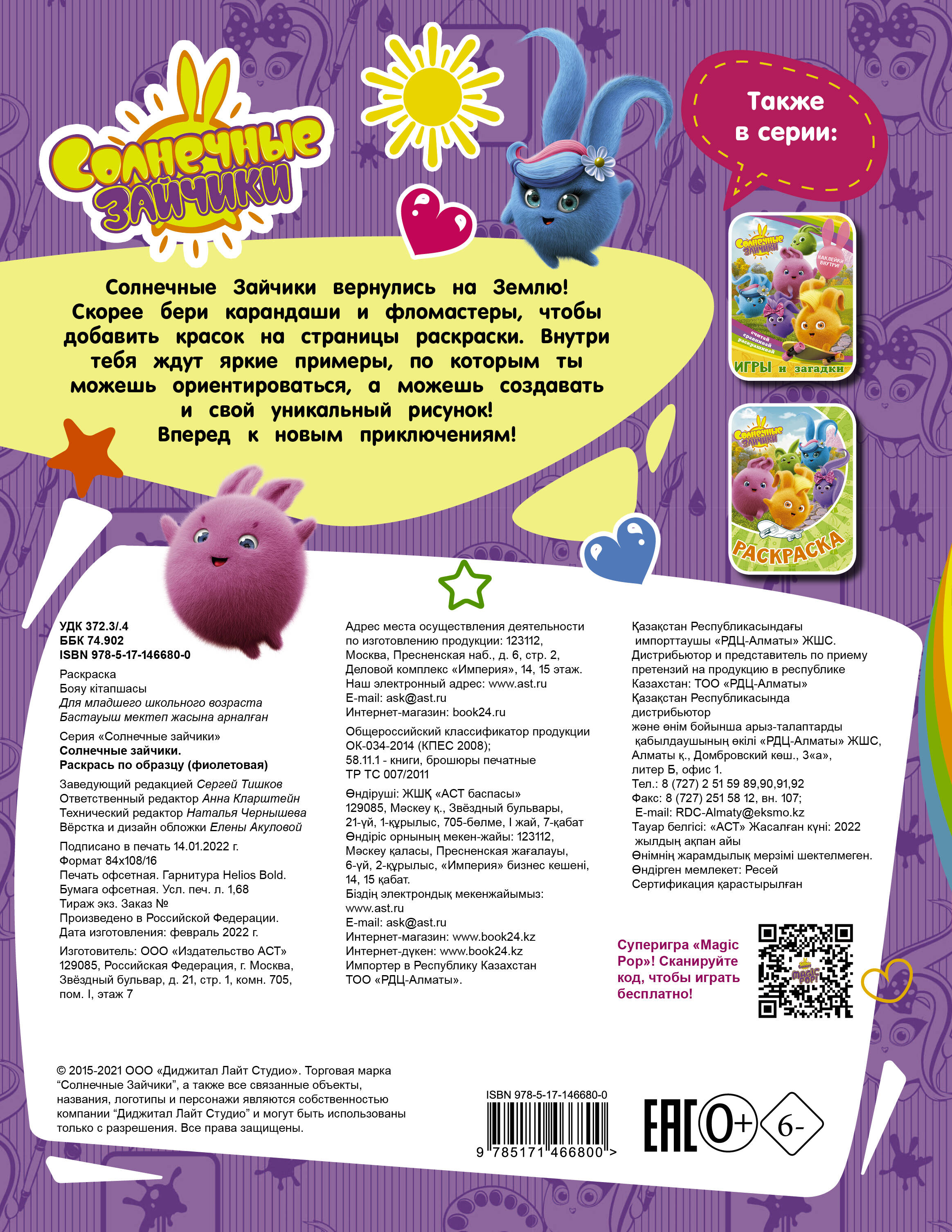 Солнечные Зайчики вернулись на Землю! Скорее бери карандаши и фломастеры, чтобы добавить красок на страницы раскраски. Внутри тебя ждут яркие примеры, по которым ты можешь ориентироваться, а можешь создавать и свой уникальный рисунок! Вперед к новым приключениям!