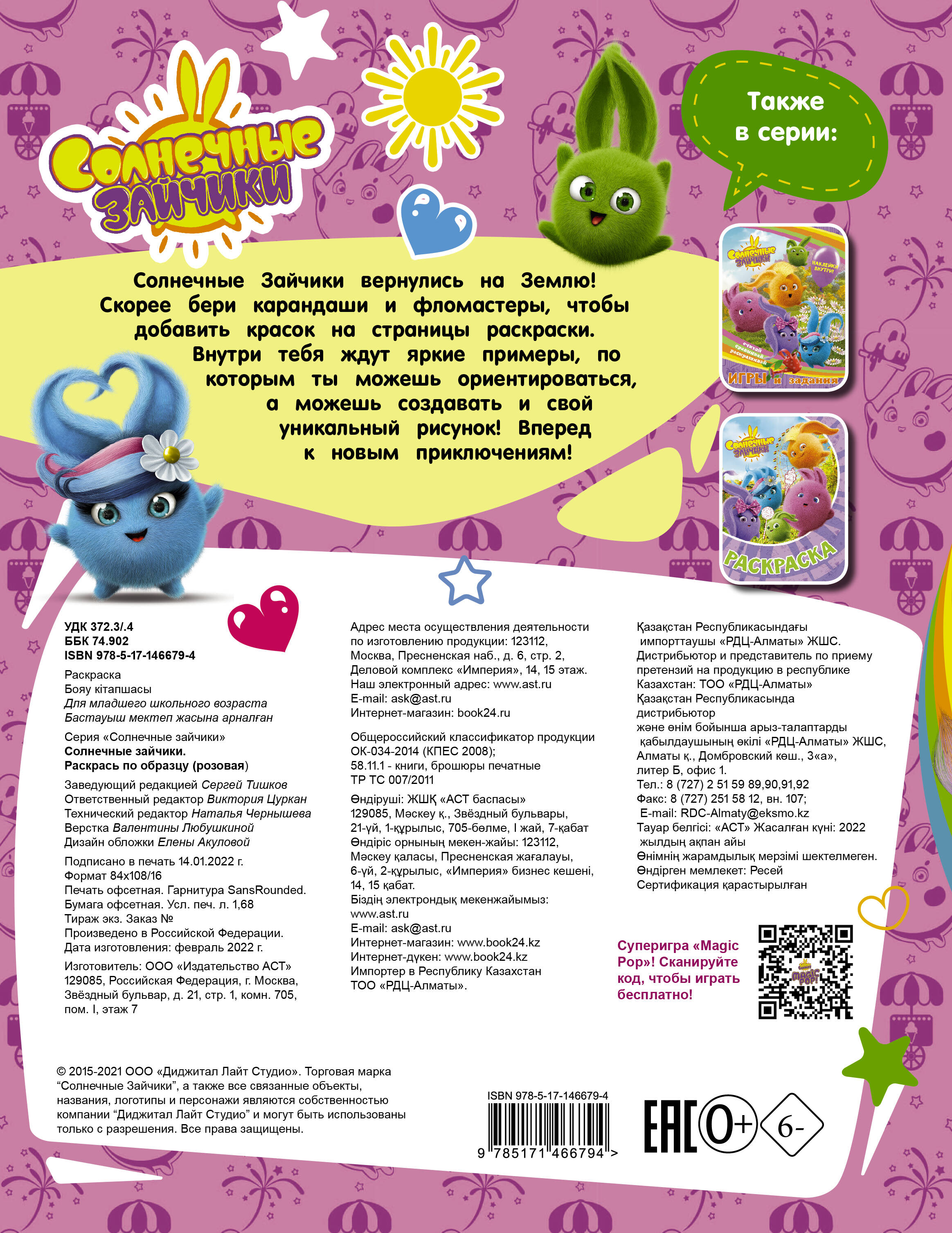 Солнечные Зайчики вернулись на Землю! Скорее бери карандаши и фломастеры, чтобы добавить красок на страницы раскраски. Внутри тебя ждут яркие примеры, по которым ты можешь ориентироваться, а можешь создавать и свой уникальный рисунок! Вперед к новым приключениям!| Издательство | ИЗДАТЕЛЬСТВО "АСТ" |