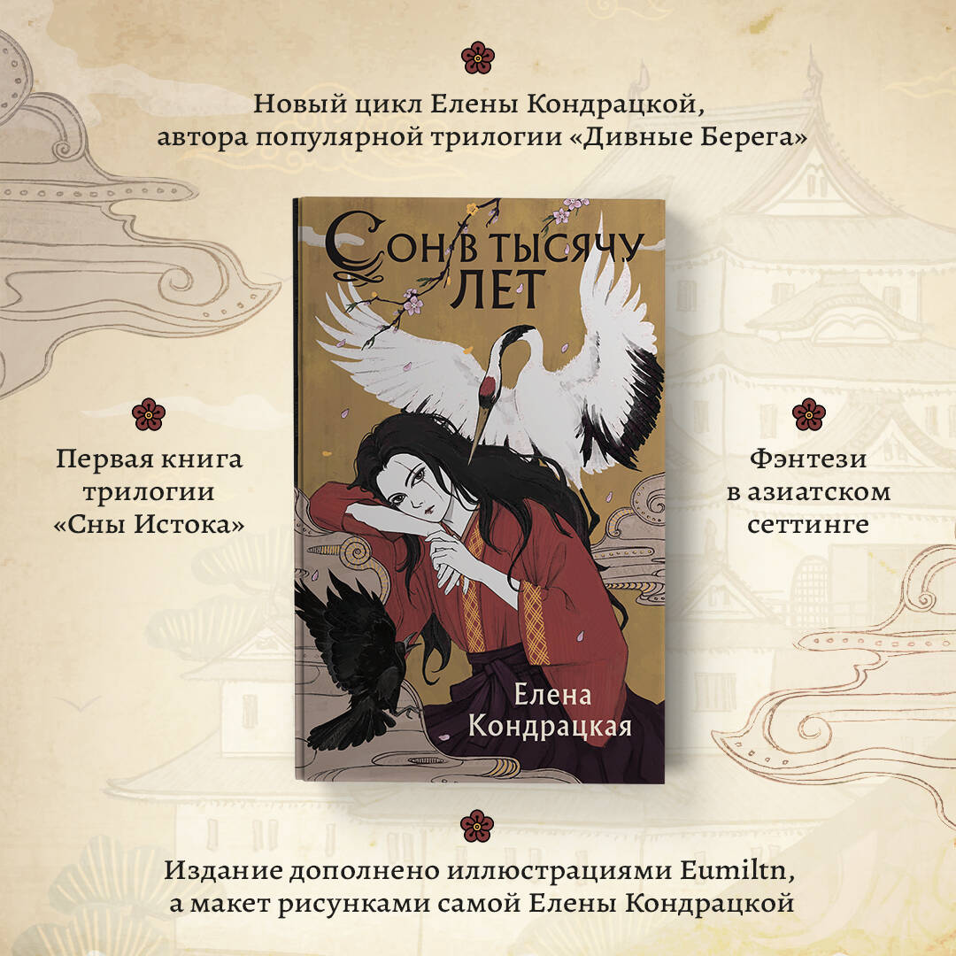 Мико и представить себе не могла, что в свои девятнадцать лет оставит родной дом, чтобы работать служанкой ёкаев - демонов, богов и духов Истока. Мико ищет сестру, которую похитил кровожадный ёкай, и рёкан - потусторонний гостевой дом - её единственная зацепка. Но как вести расследование, если в мире Истока человек - либо слуга, либо закуска? И что будет, если ненароком доверить свою жизнь коварному тэнгу? Новый цикл Елены Кондрацкой, автора популярной трилогии «Дивные Берега». Первая книга трилогии «Сны Истока». Фэнтези в азиатском сеттинге, базирующийся на японской мифологии - загадочные ёкаи и разделение миров. Автор продолжает раскрывать географию «Дивных Берегов». Действие романа «Сон в тысячу лет» разворачивается на Восточных островах, в Землях Истока. Издание дополнено внутренними иллюстрациями от самой Елены Кондрацкой и художницы Eumiltn.| Издательство | ООО "Издательство "Эксмо" |